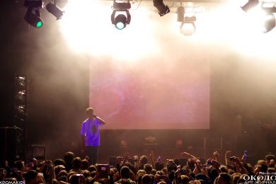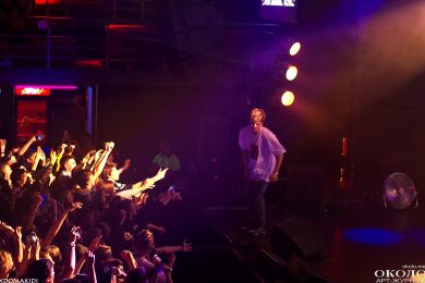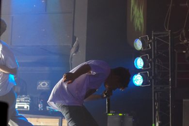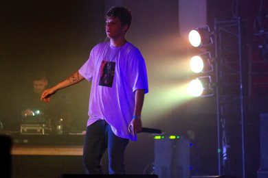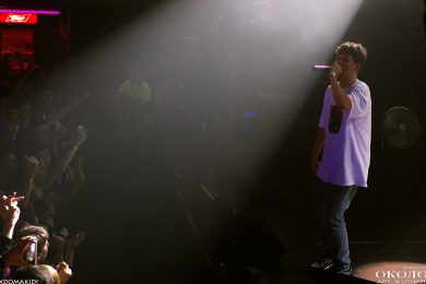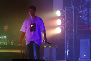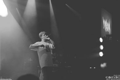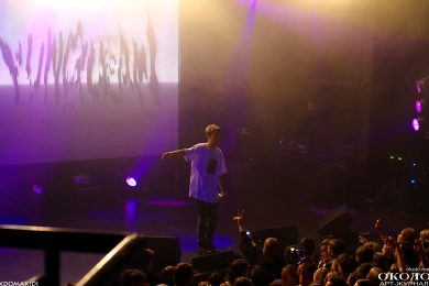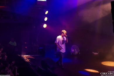 Появление на сцене Yung Lean’а сопровождается подачей добротных сгустков из дым-машины и невероятным количеством ослепительно белых зарниц, которые заряжают толпу как будто эпилептическими вспышками. Все дрожит и содрогается от буйного предвкушения первых звуков.