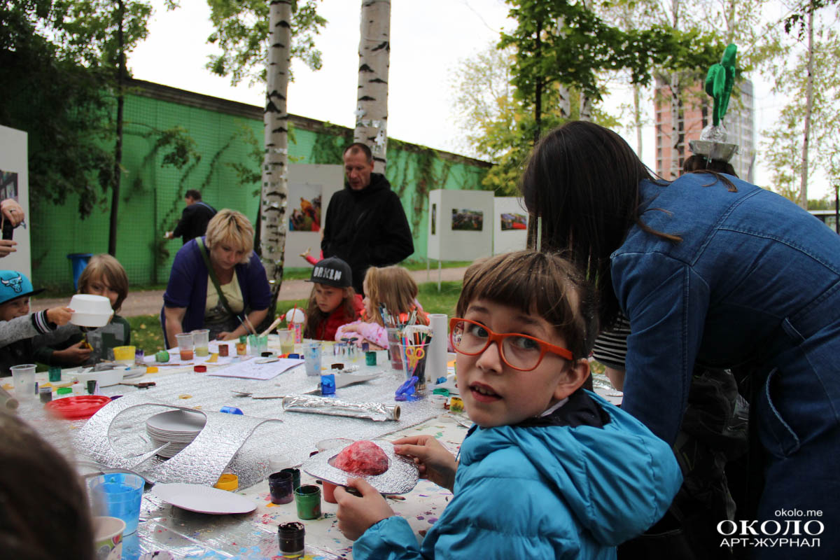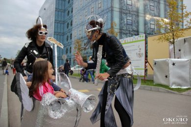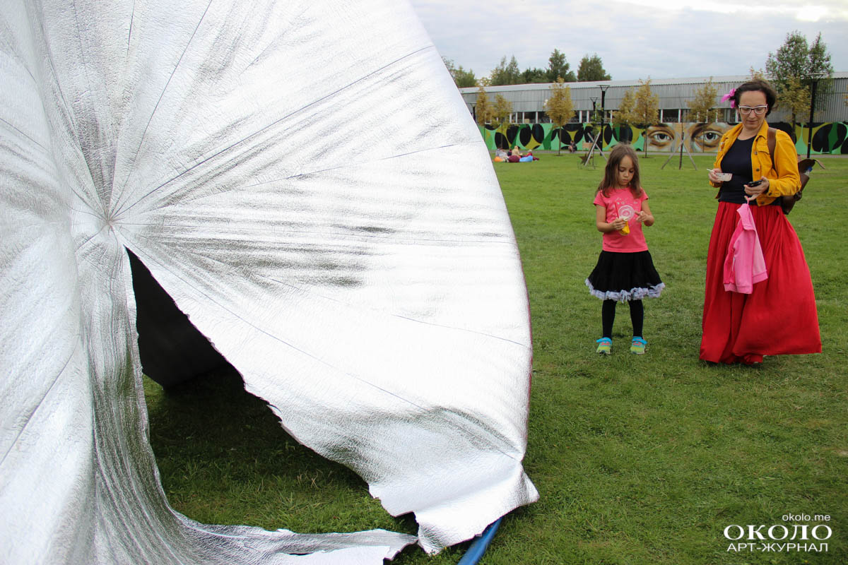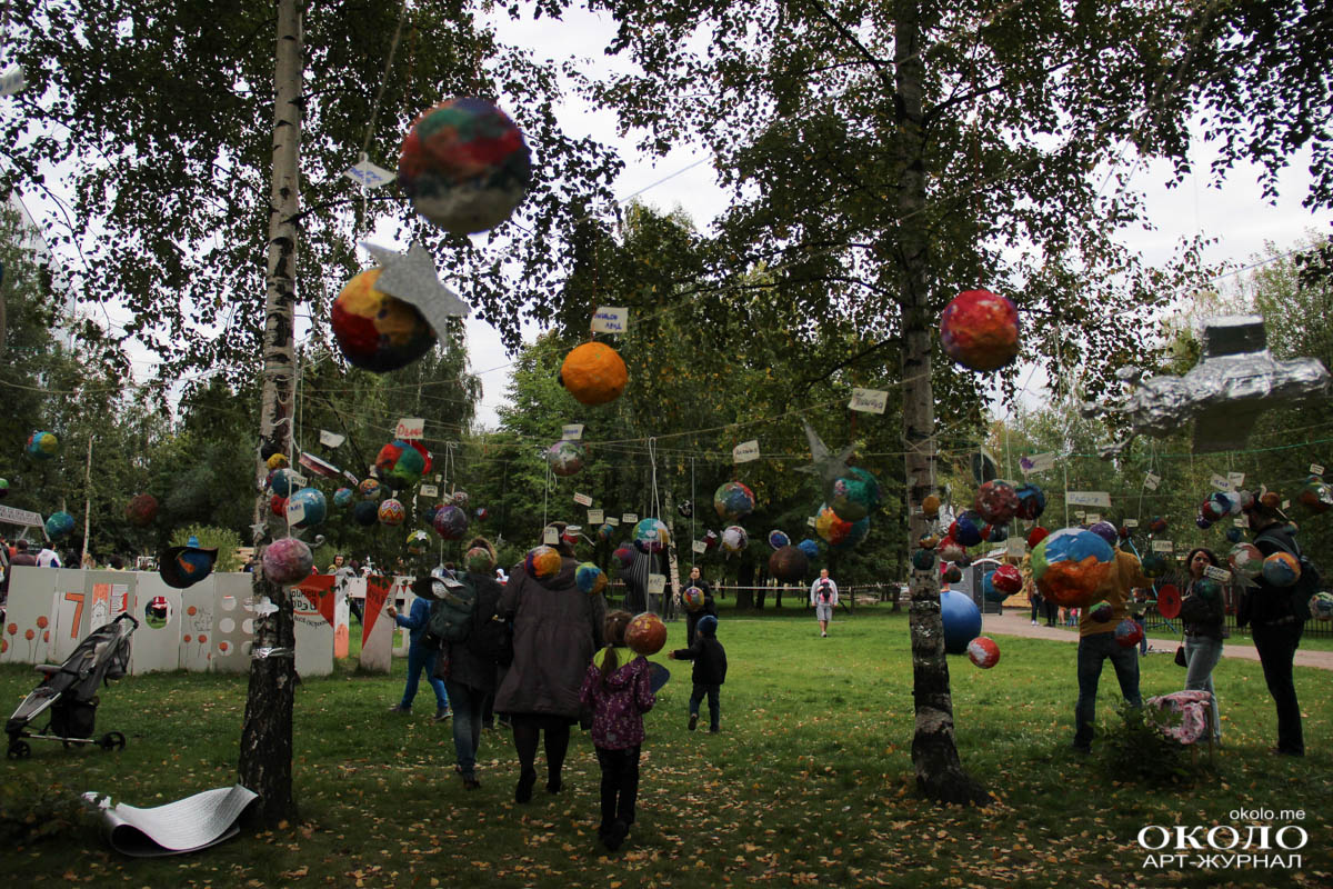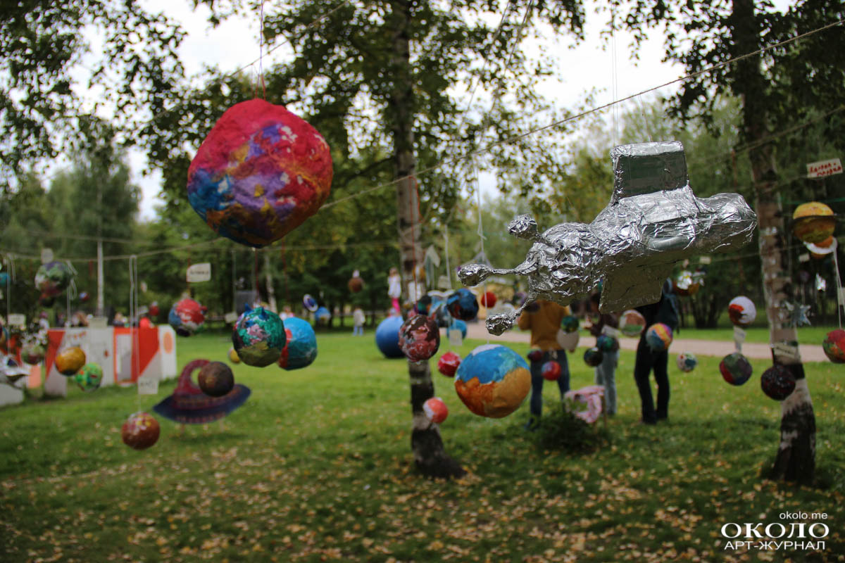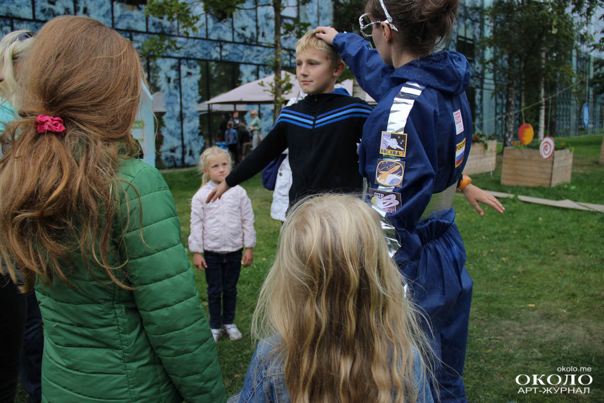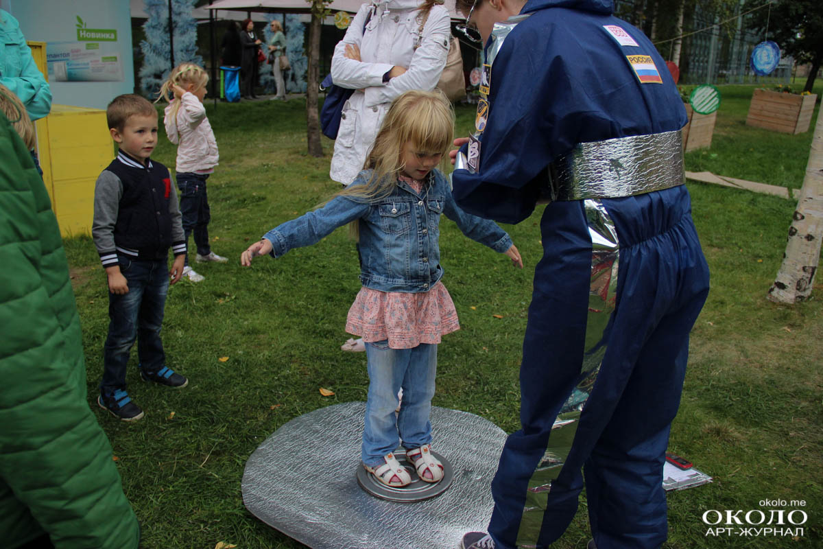 Здесь же неподалеку располагалась парковка с необычными транспортными средствами от веломобиля до летающего устройства, созданного из магазинной коляски. Космические существа отправляют тебя в полет по команде «Поехали!».