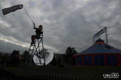 Выходя из шатра, где проходит кинопоказ, слышишь тягучий звук, напоминающий игру на пиле. Он раздавался от необычного столика с антеннами. Обычно в фильмах при высадке инопланетян звучит что-то подобное. Летающих тарелок поблизости не было, но стоял молодой человек и, размахивая руками в воздухе, создавал эти звуки ― он играл на терменвоксе. Звонкая и заунывная мелодия создается благодаря перемещению рук исполнителя в электромагнитном поле вблизи двух металлических антенн. Одна рука регулирует высоту звука, другая ― его громкость. Есть только три школы в мире, которые учат игре на терменвоксе. Они находятся в Японии, Америке и России.