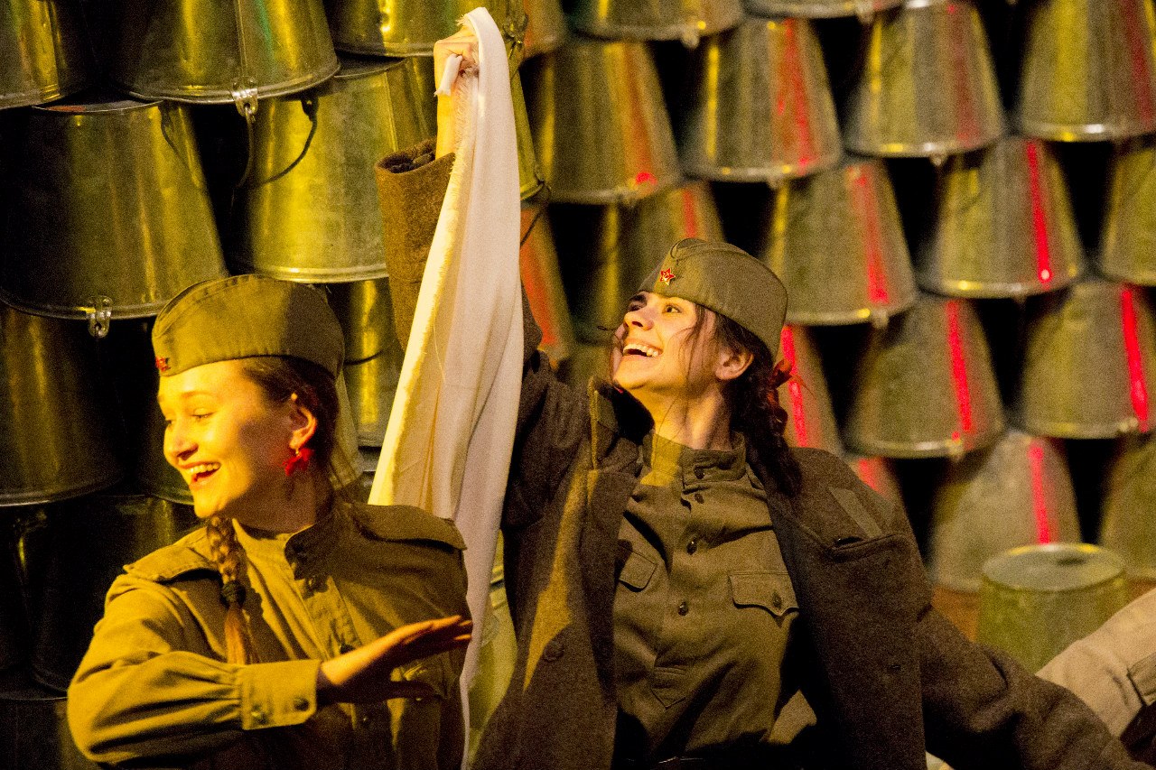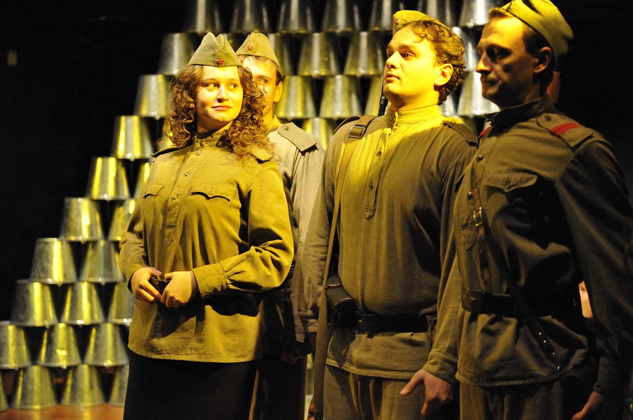 «Новый Арт театр» очень молод душой. Возникший на основе детской Студии при театре, он прежде всего нацелен на аудиторию ровесников студийцев. Хотя, у доброго и ироничного взгляда на мир нет возрастных ограничений. И о войне, той самой, изученной, испетой, прочувствованной каждым до малости здесь умеют рассказать так, что даже через долгие 70 лет мы видим в юных и взрослых персонажах пьесы драматурга и постановщика Дмитрия Калинина себя самих — современных, уверенных, бесшабашных, веселых, ранимых и чутких.