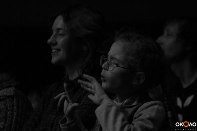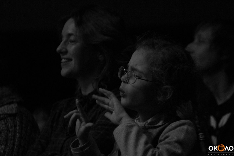Следы принадлежат Алине Михайловой, предложившей телесные интерпретации (танец) происходящего, передав ощущения в виде танца. Стопами, кистями, взглядом, бумагой на полу — она; инструментами, собой, топотом, бумагой в руках — музыканты создали условия для погружения. Гости замирали и заново, в тишине, начинали движение; Волков болтал ногами со сцены и пихался локтями с совсем юной, видимо, родственницей: «Вот, мама, не устал!».