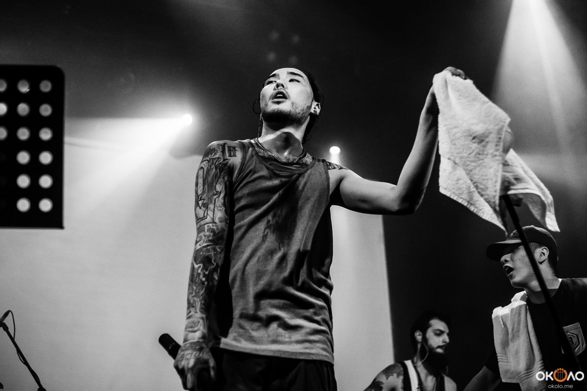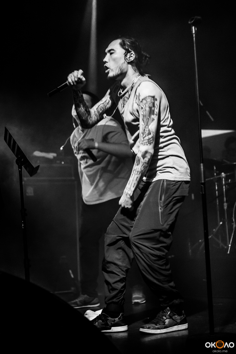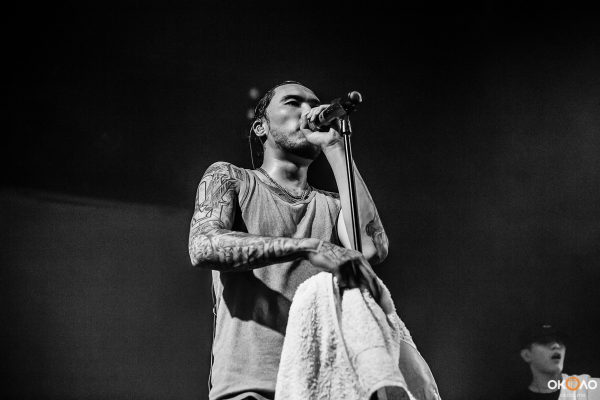 Как и предполагалось, концерт задержался минут на 30, однако, зрители отнеслись к этому довольно спокойно и встретили рэпера с улыбкой на лице и громкими криками. Начала играть музыка, на сцене появились музыканты, барабанщик сел за ударную установку, а гитаристы взяли в руки гитары, затем вышел и сам Адиль. Было видно, что никто не был удивлен появлением рэпера вместе с группой и музыкальными инструментами.