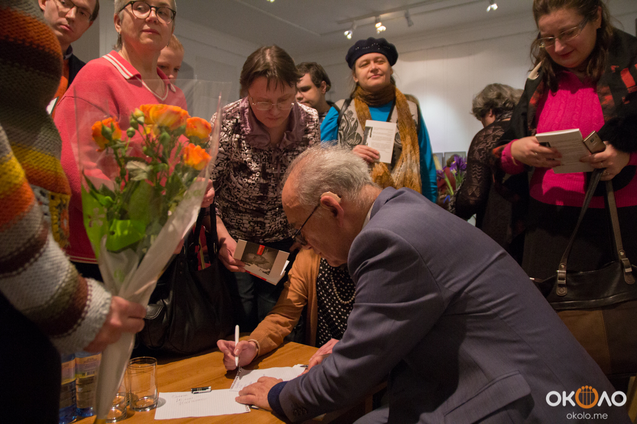 Большой зал, наполненный людьми, на несколько секунд затих и тут же содрогнулся от шума приветственных аплодисментов, встречая известного поэта. «Вот вышла книжка. Вышла в прошлом году. Называется «Земное притяжение». Самое трудное не стихи написать, а название для книжки придумать. Это почти невозможное дело! Хорошо было Боратынскому! «Сумерки» с Гюго содрал и все в порядке…» — так началась творческая встреча с Александром Кушнером в музее Ахматовой. Опоздавшие к началу посетители пробирались по старому скрипучему паркету в последний ряд на скамейки вдоль окон, а работники музея в спешке вносили в зал дополнительные стулья. «Значит, я прочитаю стихи… Слышно меня хорошо? И, если возникнут какие-то вопросы, пожалуйста, задавайте. Только, единственная просьба, в письменном виде» — Кушнеру 79 лет, он носит слуховой аппарат, но даже с его помощью общаться с публикой ему было непросто.