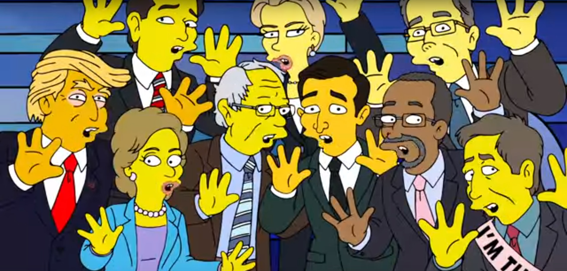 Канал Fox опубликовал короткий ролик о том, как вся эта предвыборная гонка сводит с ума народ. Мардж снятся кошмары, она постоянно ворочается и затем просыпается в ужасе. В ее голове все время ссорятся Трамп, Клинтон и другие политики. У Симпсонов получилась «Дебатная восьмерка», в которой как и у Тарантино есть единственный чернокожий и единственная представительница слабого пола. Когда Мардж наконец засыпает, она видит радужную картину, как все дружно танцуют и поют, но вновь начинают спорить и бить друг друга. Муж окликает ее, но она просит не будить и бормочет, что хочет узнать, кто выиграет. На что Гомер отвечает: «Мы все хотим узнать».