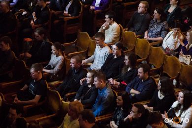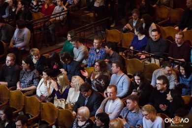 Выступление началось… хотя, нет. Все началось с огромной очереди, протянувшейся от стойки билетеров в холле ДК до площади Льва Толстого. Причина возникновения такой очереди, конечно, в огромном количество фанатов Тарьи, коротавших ожидание на холоде оживленными беседами. Но нельзя не упомянуть узкие одностворчатые двери, сквозняк, на который жаловались все гости вечера, и непродуманное устройство холла, не позволяющее пропустить людей к гардеробам, прежде чем у них проверят билеты. Неудобства, которых лишены, к примеру, здания Мариинского театра.