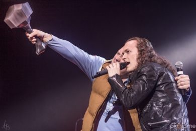 “Итак, приглашаем на сцену Константина Румянцева, но он куда-то пропал, пока нес сундук с сокровищами и сражался с войском орков.” — смеясь, сказал Евгений Егоров, вокалист «Эпидемии«. Замечательную песню с названием ”Жизнь в сумерках” он решил спеть сам. Но, конечно, публика ему этого сделать не дала и начала перепевать его.