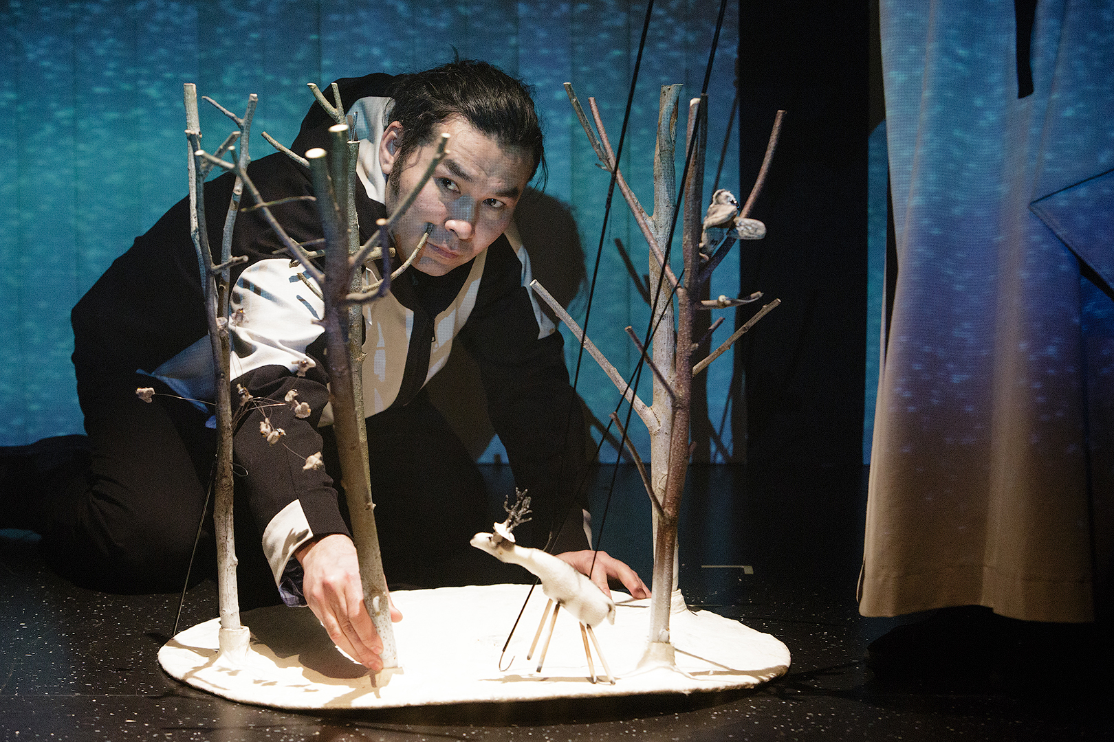 В конце апреля – 23, 25, 26 числа – состоялись премьерные показы спектакля Яны Туминой «Колино сочинение». Это – краудфандинговый проект, который пришел в движение до момента каких-либо материальных гарантий: дата премьеры была определена даже до начала изготовления реквизита.