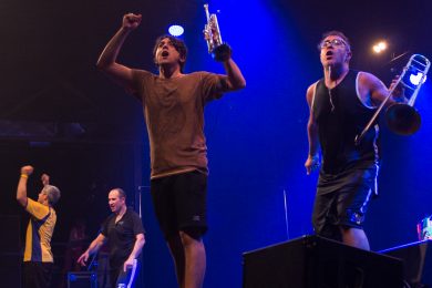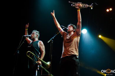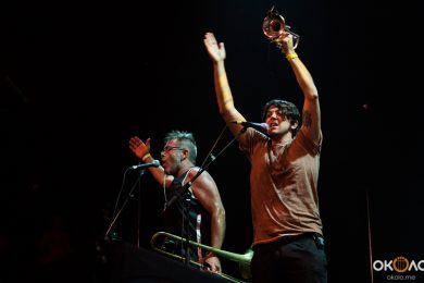 Музыканты буквально ворвались на сцену, за считанные мгновенья погрузив всех присутствовавших в атмосферу праздничного карнавала. Трубач, тромбонист, гитарист и сам Manu Chao протанцевали весь концерт, то подбегая к самому краю сцены, чтобы раззадорить публику, то возвращаясь к микрофонам, чтобы весь зал мог подпеть разудалому: «Хуга-чака, хуга-чака, хуга-чака, хей»!