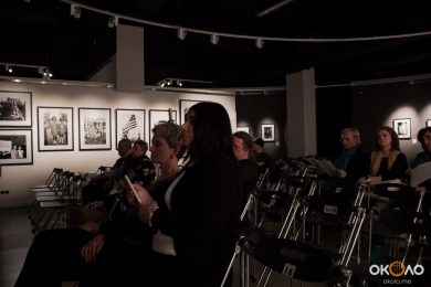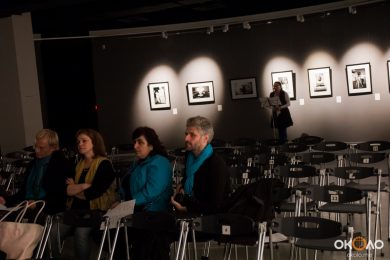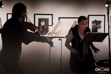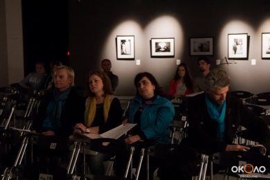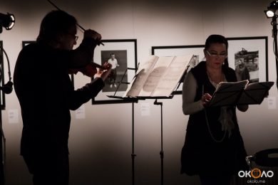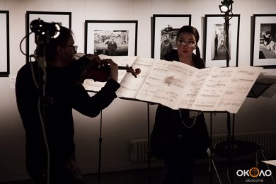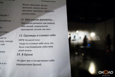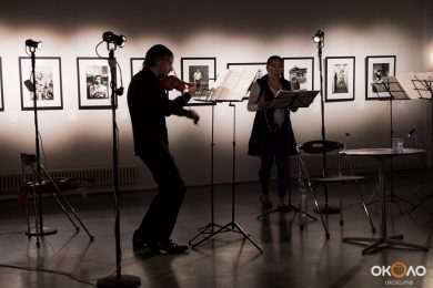 Выступление имело камерный формат, и вместо привычного зала на третьем этаже галереи современного искусства софиты, стулья и пюпитры были установлены прямо посреди выставки Стива Шапиро «Проживая Америку». Такое соседство, скорее, обогащало эстетическую палитру происходящего, однако же, было крайне неуместным со стороны организаторов во время концерта пускать на выставку людей, которых концерт нисколько не интересовал. Их шаги разносились гулким эхом по залу в самый неподходящий момент, они мелькали в просветах то слева, то справа от музыкантов, отвлекая от сложной музыки Куртага. Впрочем, человек, привычный к особенностям современного искусства и знакомый с произведением Джона Кейджа 4′33″, мог бы и это недоразумение вплести в ткань звучавшего произведения, представив неизбежность и беспристрастность этих появлений как своеобразную проекцию кафкианского мира в наш мир. Собственно, в либретто, любезно выданном Владиславом Песиным всем присутствовавшим перед началом концерта, первым стихом первой части значилось как раз следующее: