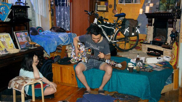 Однако если у вас стоит выбор между походом на концерт или просмотром его в сети, лучше выбрать первый вариант. Не только из-за возможности поближе познакомиться с любимым исполнителем, но и из-за квартиры, в которой все будет происходить. Поверьте, вам стоит своими глазами увидеть узкую прихожую, в которой аккуратно расположились тридцать пар обуви, и кухню, которую от комнаты-студии отделяет лишь барная стойка. Конечно, все гости не помещаются на диване, но можно взять подушку и присесть на пол, или даже залезть на подоконник. Исполнитель обычно располагается на небольшой сцене, позади которой работает искусственный камин, и плавают рыбки в аквариуме. Изучать это место можно часами и всякий раз удивляться, находя ловец снов, старые постеры или проигрыватель для виниловых пластинок в самых неожиданных местах. С собой можно взять фрукты или сладости (гости, как правило, не платят за вход, а просто приносят с собой угощение). Это даже приветствуется, стол располагается практически в центре комнаты.