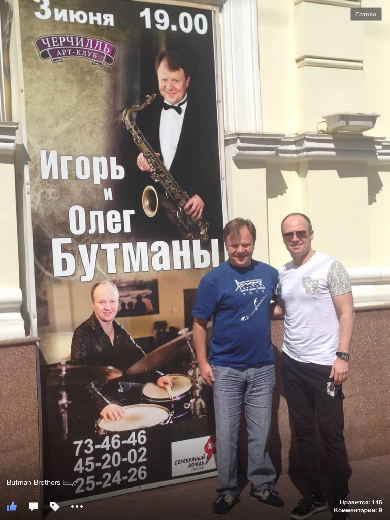И.Б: Любовь к джазу нам привил наш отец-Михаил Бутман, который тоже сам был джазовым любителем-барабанщиком. У нас в доме, где я родился, жил саксофонист Орест Кандат, который был первым саксофонистом джаза Утёсова. Вот с этого всё началось.