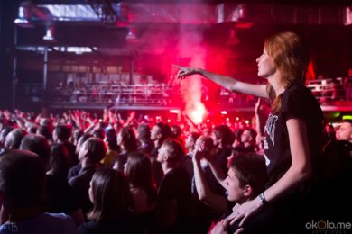 Непередаваемая атмосфера ожидания шоу заставила поклонников ликовать и звать группу на сцену. Заходя в зал, можно было заметить, что он был забит полностью, даже на балкончиках люди уже пролезали ближе к ограждению, чтобы увидеть все, что происходило вокруг.