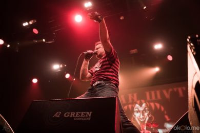 Все фанаты готовы, уже достали флаги, успели выпить по кружке пива, настроились на отличный вечер. И тут музыканты выбегают на сцену и начинают играть интро из ”Гимна Шута”. Поклонники кричали, хлопали, услышав знакомые ноты, рванули от бара к сцене. Мужчины кричали ”Хой”, да и женщины не отставали. Андрей Князев выбежал на сцену и сразу же начал заряжать всех поклонников своей энергией: