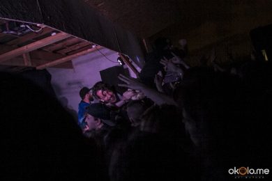 Гости начали подтягиваться где-то часа к четырем, все на легкой ноте, красиво, публика адекватная и приятная, атмосфера сверхдружественная, как будто разом встретилась огромная куча старых друзей. У главной сцены веселый слэм, танцы, тапочки, бросаемые в воздух, все радостно и радужно. У малой сцены тесно, тепло и шумно, все по андеграунду. Малая сцена на этот раз привлекала людей не меньше, чем большая, и дело здесь не в том, что крыша и стены, а в том, что все приглашенные команды были интересные и достойные.