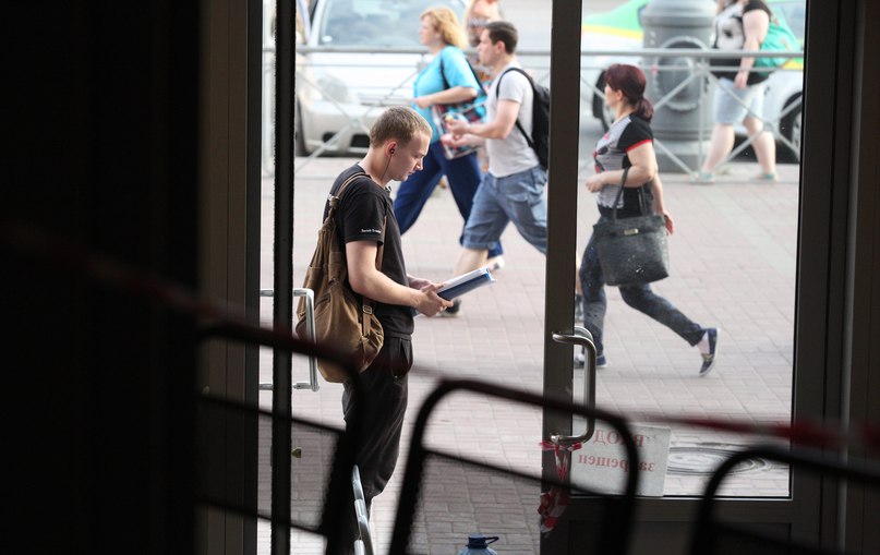 В здании вокзала находятся два персонажа – Калле и Циффель (Максим Фомин, «Мастерская» Григория Козлова и Сергей Волков, театр Ленсовета). Внешностью и одеждой они не отличаются от толпы, выдает их разве что микрофон. Каждый зритель перед началом получает наушники и приемник, таким образом, достигается ощущение подслушанного разговора.