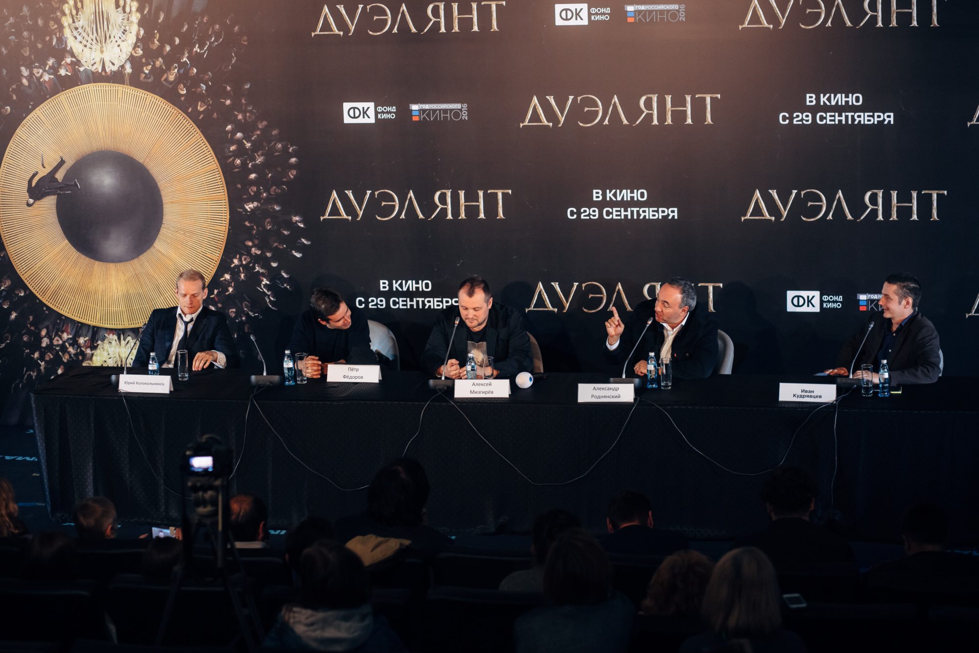 23 сентября состоялся пресс-показ «Дуэлянта». В честь этого, в «Формулу кино Галерея» прибыла часть съемочной группы. Исполнитель главной роли Пётр Федоров, продюсер Александр Роднянский, режиссер и сценарист Алексей Мизгирёв, а также актер Юрий Колокольников отвечали журналистам на вопросы и делились впечатлениями о съемках.