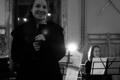 Когда мы рассказывали вам о концерте солистов ансамбля Phoenix и eNsemble на Новой сцене Александринского театра, то не смогли обойти проблему восприятия современной музыки, неподготовленности слушателей. И если на том концерте она решалась постфактум, то, к чести ансамбля {instead}, музыканты решили эту проблему заранее: исполнение каждого произведения предварял небольшой рассказ о нем и его авторе. В роли конферансье выступила скрипачка Елена Козлова.