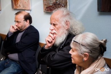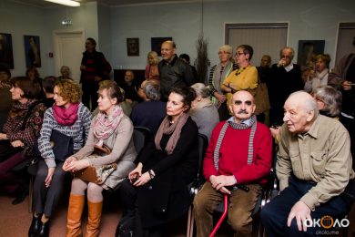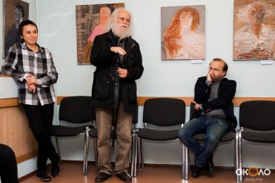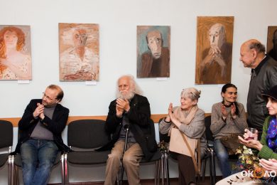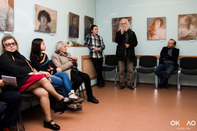 По окончанию официальной части вечера нам удалось поговорить с Юлией о том, как формировался ее авторский стиль: «Формирование собственного языка такая вещь таинственная, никогда не знаешь, что окажет на нее влияние! У меня академическое образование, я человек насмотренный, но я не выбираю, как рисовать, просто чувствую, что это я или не я. Когда я училась в Академии, мастера у меня не было, я училась на реставратора и занималась реставрацией икон двадцать лет. Я не могу выделить какого-то любимого художника, который на меня повлиял, мне очень многие нравятся. Сейчас мне близки экспрессионисты, хочется «непокоя».