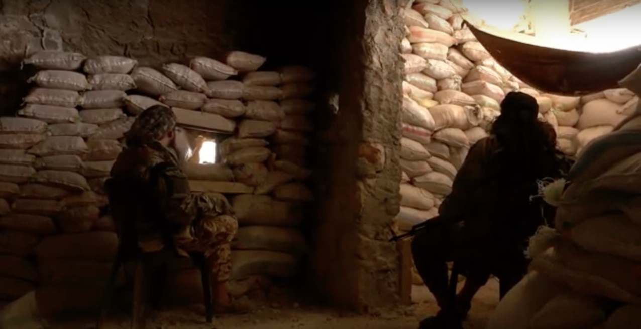 О многом говорят даже не интервью, а сами кадры, причем очень символичные. Например, виды сирийских пейзажей в синей дымке, на фоне которых силуэты вооруженных боевиков. Или кадры взрывающихся БТР, мелькающих оранжевой вспышкой в сером небе. И все это под естественные звуки редкого пулеметного ряда и взрывающихся где-то вдалеке бомб.