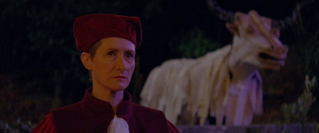 Первый эпизод – почти безмолвная картина про старика Симау по прозвищу «Без кишок», которого обвиняют в убийстве жены, дочери и еще двух женщин. В щегольской красной рубахе и с ружьем наперевес, он бежит от правосудия по желтым дорогам и бесконечным холмам. Хоть и делает это как-то неторопливо, без суеты и паники, будто наслаждается отпуском с купанием и солнечными ваннами. Кадры местной природы периодически пересекают полицейские дроны, напрочь заглушая естественные звуки своим ревом. Следующий эпизод – театрализованный суд с элементами абсурда. Помещенные в амфитеатр, португальцы признаются в гнусных поступках, обвиняют и прощают друг друга. А заключительная часть – трогательная история про собаку Дикси, «чистую как лунный свет», которая переходит из одних рук в другие.
