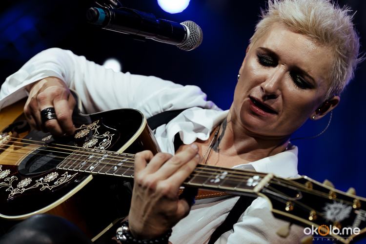 «Салют, Питер! Растопим лед!» — Арбенина сразу задала тон выступлению, исполнив «Интро» из нового альбома, «Джаггер» и «Шагай». Каждая песня требует своего звучания, Диана словно жонглирует гитарами и вкладывает себя до конца.