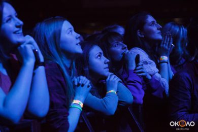 Но, кроме детей с родителями, была здесь и более взрослая публика. Например, парни, на лицах которых читалось «я здесь ради своей девушки» и компании веселых подружек, которые начинали снимать друг друга на телефоны еще до начала концерта.