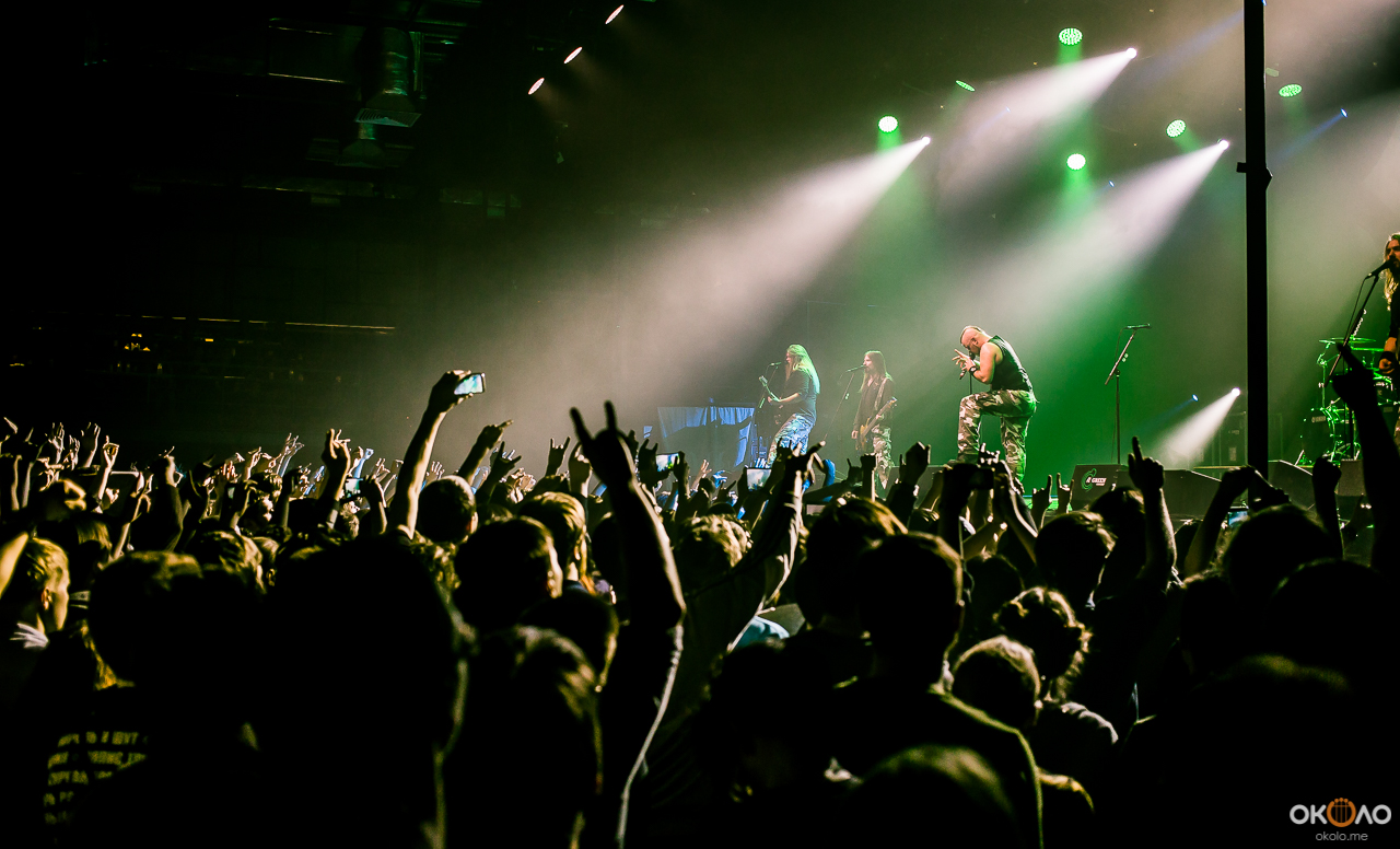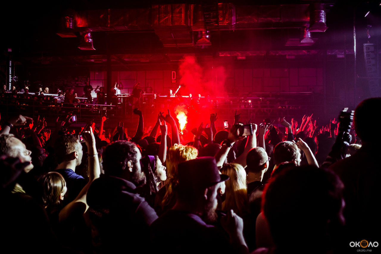 Как уже говорилось, в репертуаре Sabaton есть пять песен, посвященных непосредственно России — и четыре их них прозвучали на концерте. Слушатели и так на протяжении всего вечера постоянно высказывали группе свое восхищение, скандируя то ее название, то полюбившееся шведам выражение на слог «за». Там, где стояла я, в первом ряду, было относительно спокойно, а вот судя по рассказам очевидцев где-то в центре зала творились слэм и прочие виды отжига. Иногда в самом прямом смысле: даже я издалека увидела зажженные в толпе фаеры. Теперь представьте, как отреагировали зрители, услышав мощные произведения о своей истории.