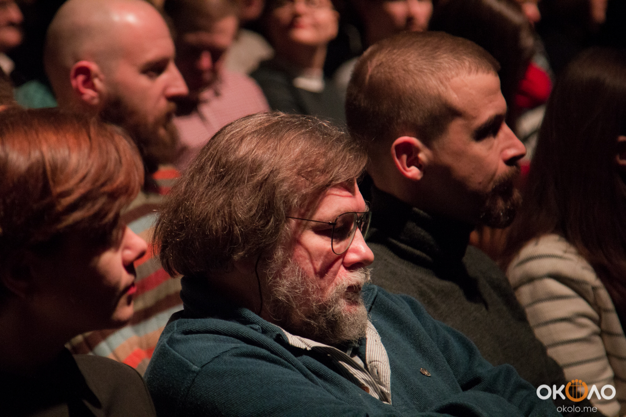 Громкое имя Филипа Гласса собрало в стенах Эрарты самую разную публику: пожилых улыбчивых меломанов, парочки влюбленных, не размыкавших объятий на протяжении трехчасового концерта, молодых музыкантов, которые с жаром обсуждали услышанное, и видных деятелей петербургской культуры: к примеру, нельзя было не заметить среди слушателей известного петербургского фотографа Юрия Молодковца.