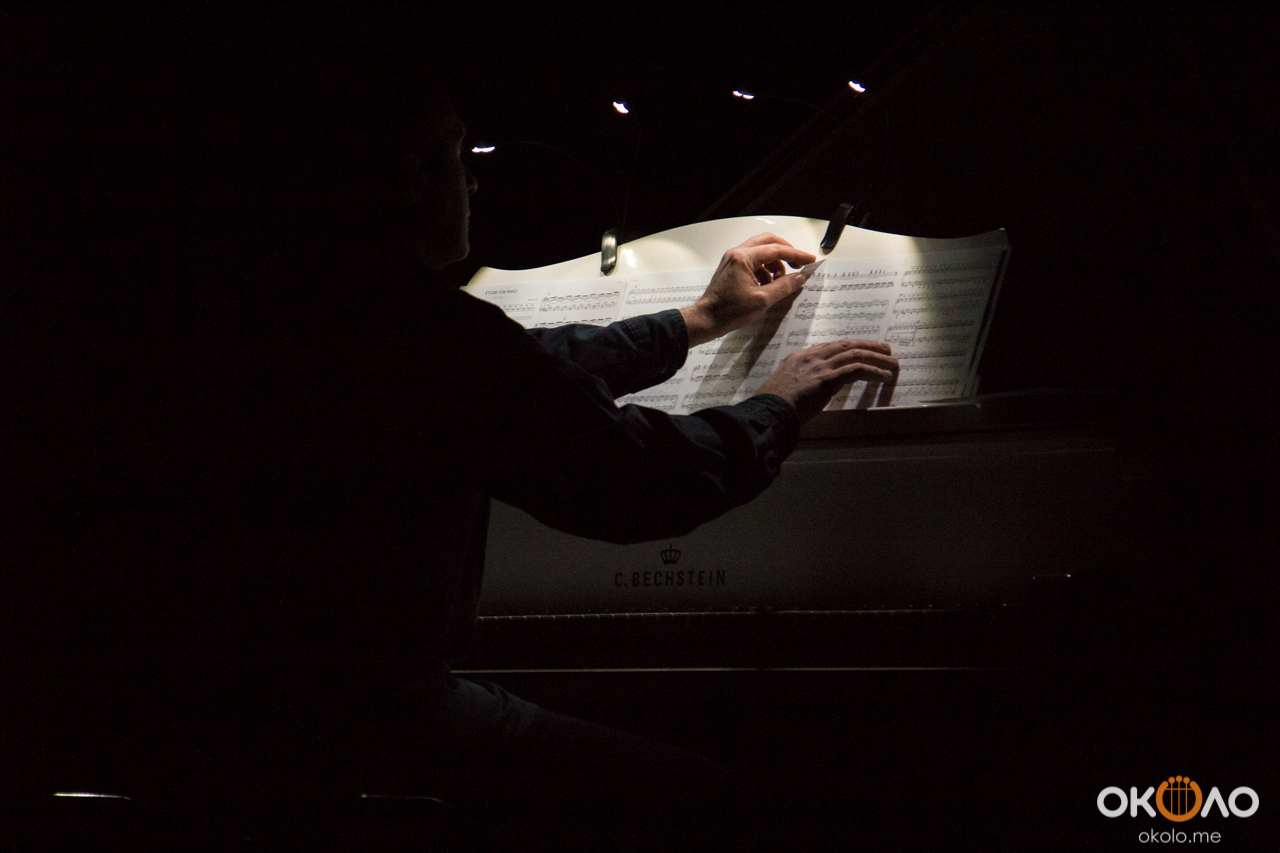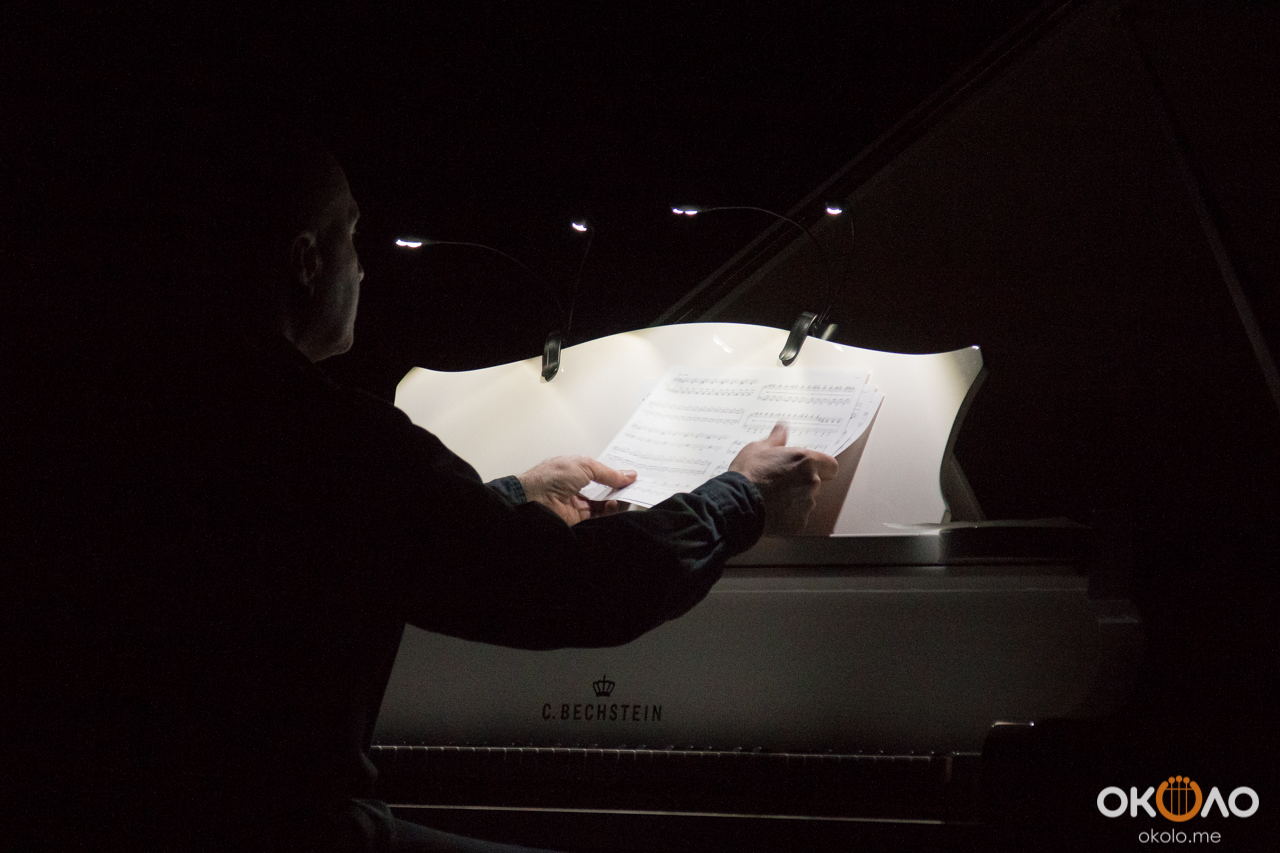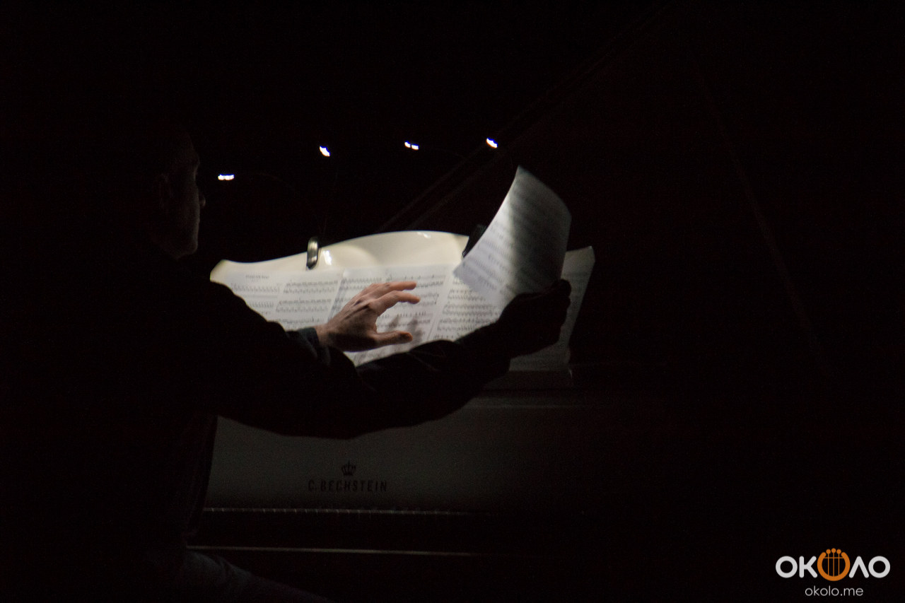 Концерт прошел в абсолютной темноте, лишь четыре лампочки скупо освещали ноты для пианиста. Благодаря этому каждый слушатель, находившийся в заполненном зале, смог оказаться наедине с музыкой.