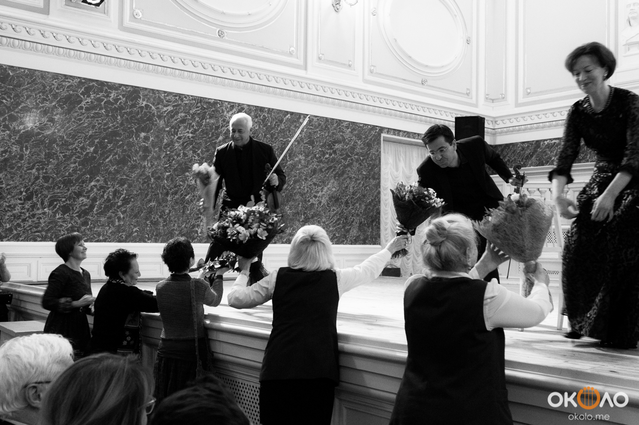 Слушателям, которым повезло посетить Капеллу тем вечером, представилась редкая возможность увидеть не просто Спивакова — руководителя ансамбля, но Спивакова — скрипача. Да, маэстро сам исполнял избранные сочинения Баха вместе с Анастасией Белуковой — сопрано, Тимуром Пирвеврдиевым — скрипка, Дмитрием Прокофьевым — виолончель и Зоей Аболиц — клавесин.
