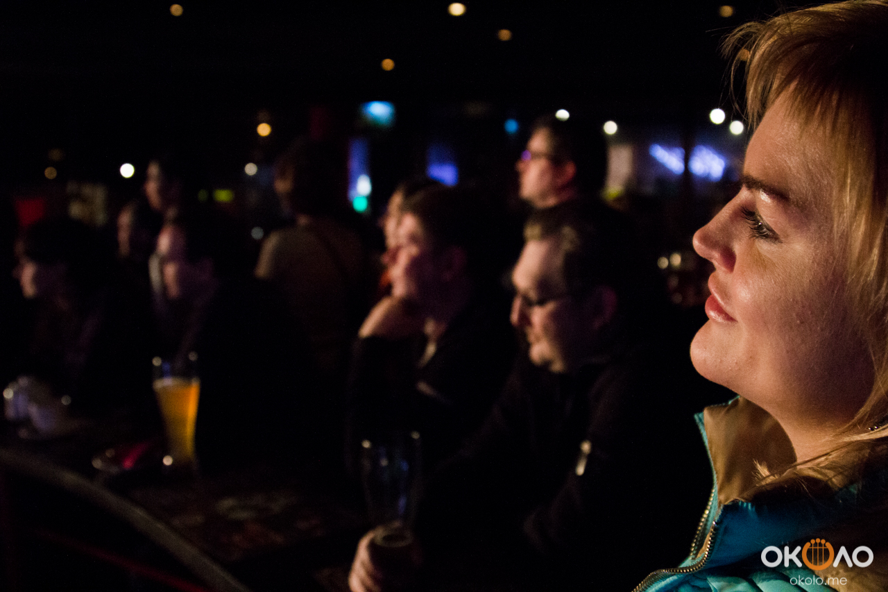 Для разогрева музыканты исполнили романтичные композиции из творчества Гребенщикова «Зимняя роза» и «Желтая луна» с альбома 2003 года «Песни рыбака». Женская половина зала рукоплескала и подпевала. Многие пришли в этот вечер именно за музыкальным праздником, который был им обеспечен. Вокал, гитарные, скрипка, ударные и перкуссия — все было усладой слуху!