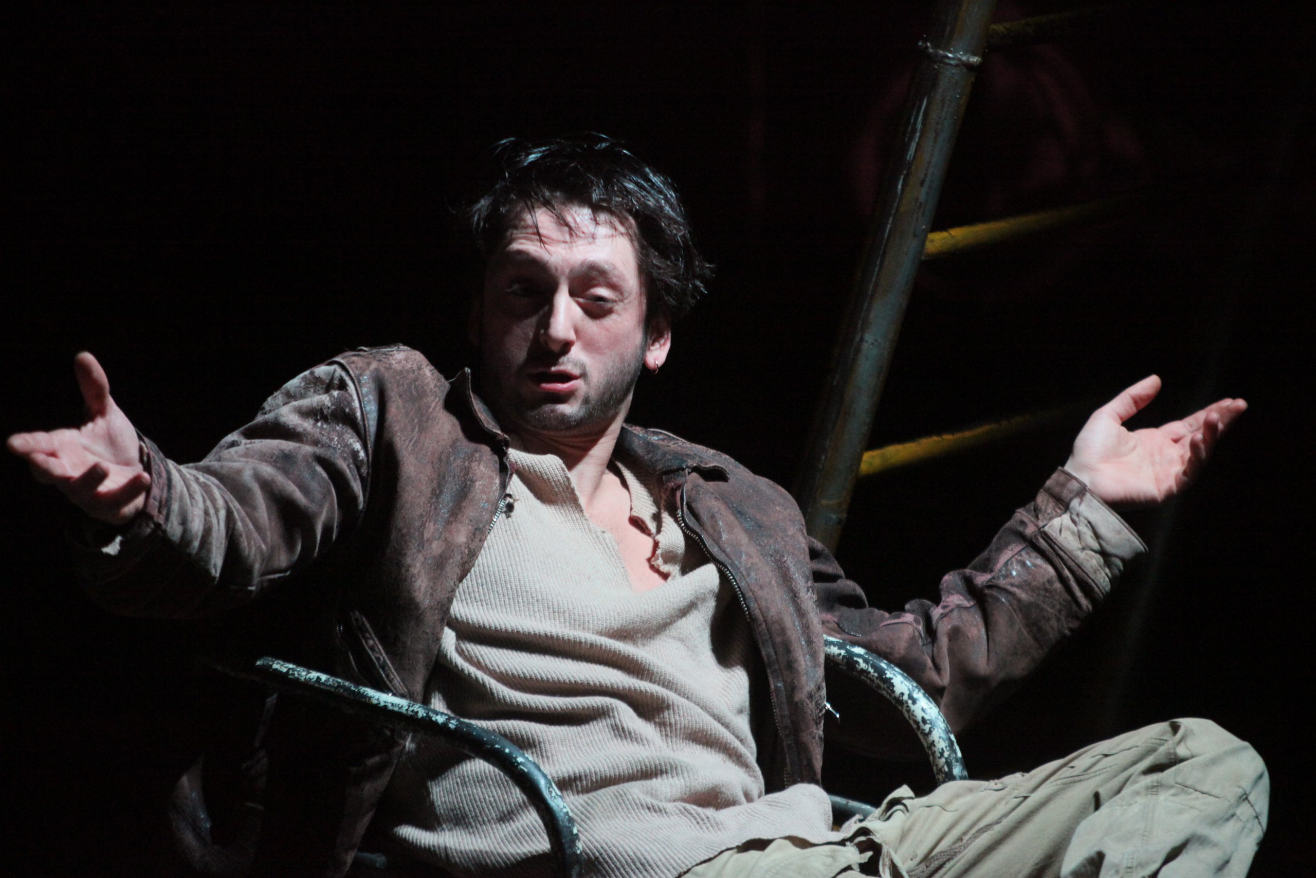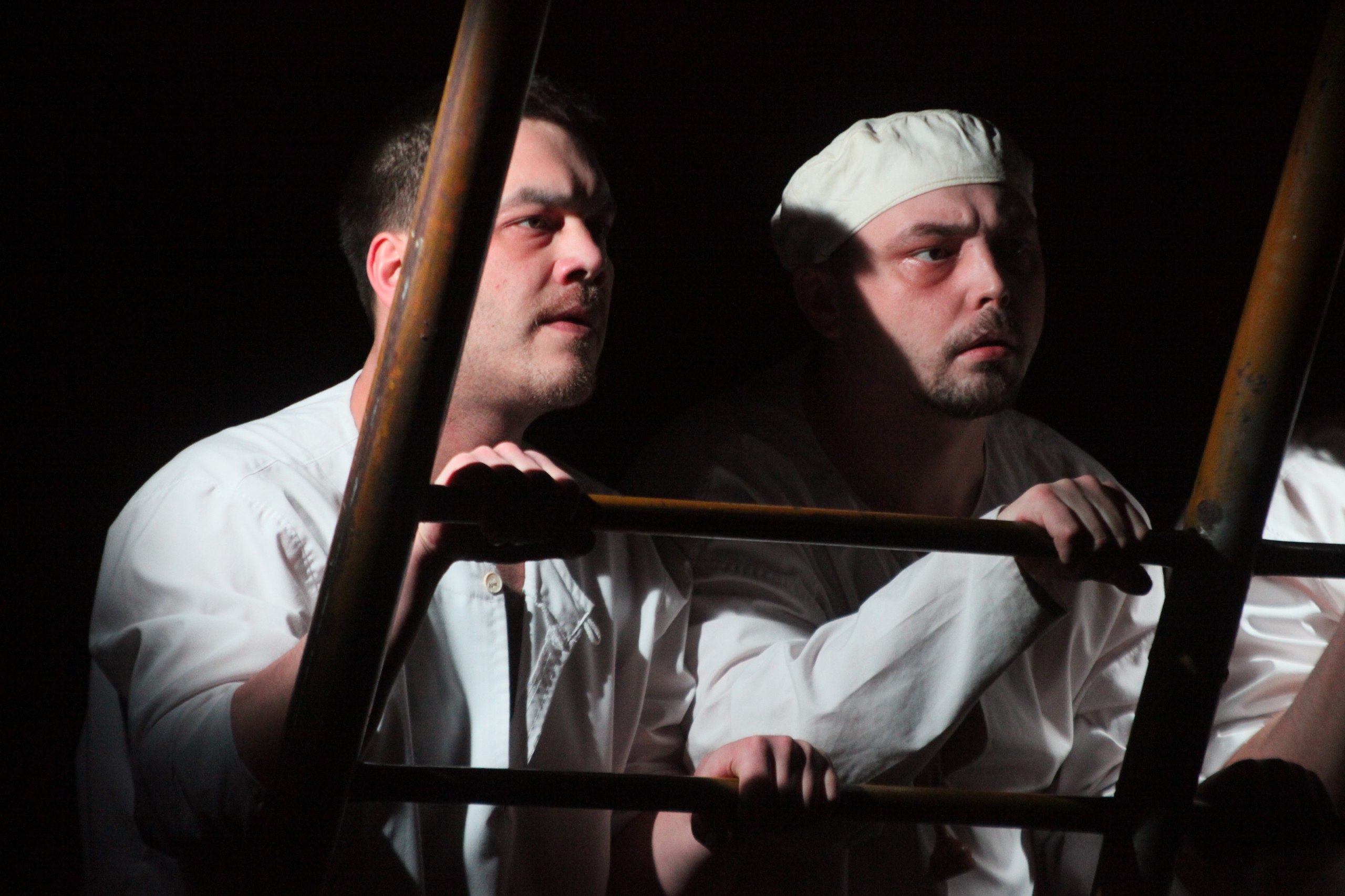Через минуту оказывается, что еврея Гуревича играет азербайджанец Тагиев, и этот факт тоже вполне соответствует недавней эпохе, когда все народы без спросу согласия были сплавлены в единый сырок «Дружба». В этой, не вполне естественной ситуации, имелась своя интересная особенность: нелюбовь сословная и межнациональная чаще всего проявлялась на словах, с пьяных глаз, а на деле общий котел сплачивал не на шутку, отчего дружба чаще всего означала настоящую поддержку. Именно в такой атмосфере подтрунивания, шизоидной беззлобной издевки, психической неустойчивости, но мгновенной готовности прийти на помощь, живут душевно больные обитатели палаты номер три. Как известно, в дурдомах пребывают зачастую не только натуральные психи, но и несогласные с режимом инакомыслящие, а также ловкие притворщики, по причинам политическим, социальным или криминальным желающие считаться дураками. Именно такую парочку представляют собой два главных героя пьесы — принципиальный алкоголик и диссидент, умнейший Лев Гуревич (Фарид Тагиев) и явно здоровый, хитроумный староста палаты Прохоров (Денис Нагретдинов).