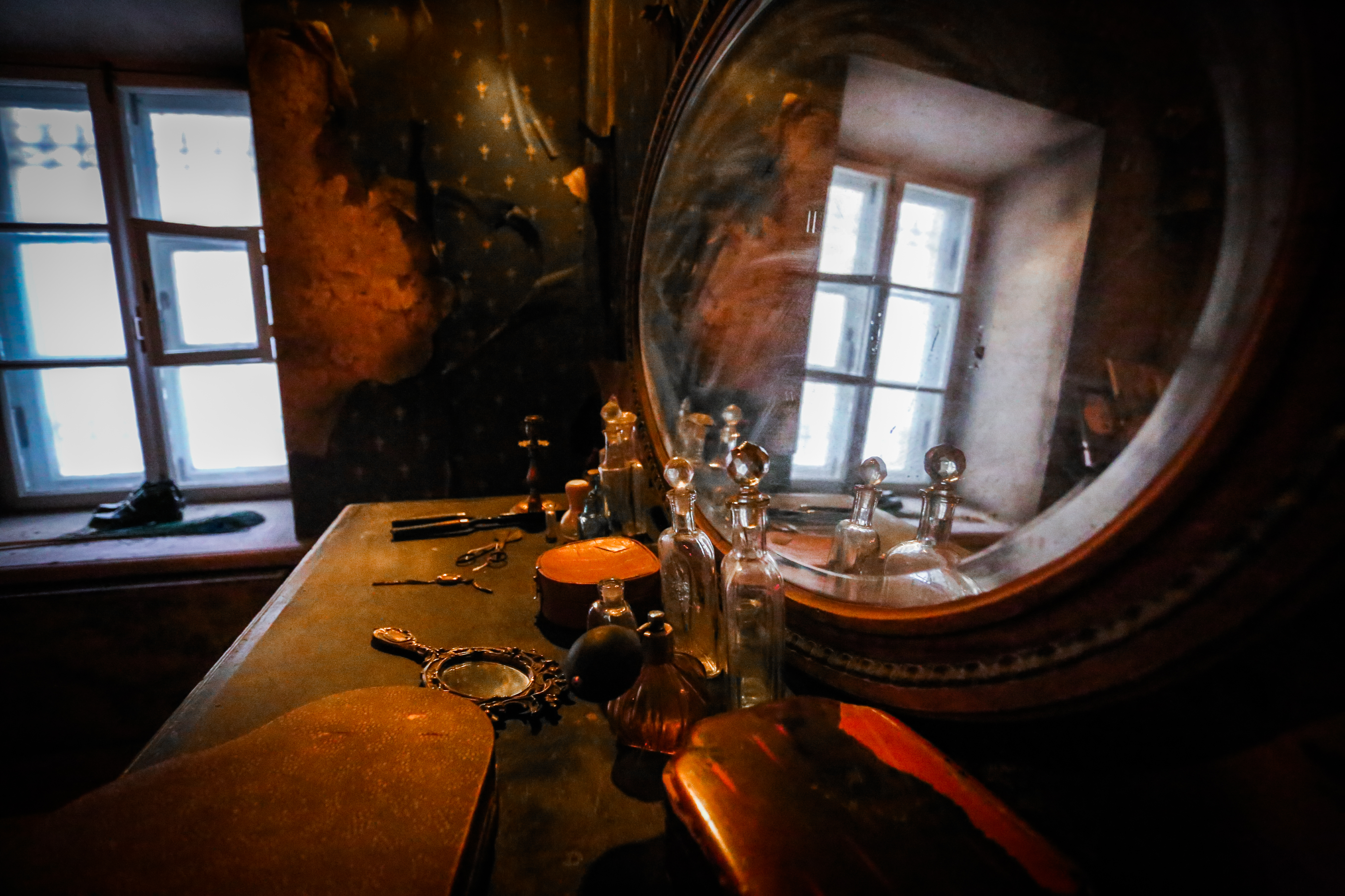Здесь ровным счетом ничего не похоже на привычный театр с креслами в зрительном зале. Задействованы совершенно другие органы восприятия, поскольку все можно взять в руки, заглянуть, пощупать, понюхать. Сунуть палец в баночку с косметикой тоже не возбраняется, но очень скоро выясняется, что всей этой парфюмерией совсем не понарошку пользуются актеры, а потому лучше оставить им все, как есть. Зато, например, не полениться и прочитать письмо на столе в кабинете просто необходимо, потому что без этого можно не уловить смысла происходящего в дальнейшем. Принцип прост: чем больше любопытства, интереса и активности проявит зритель, тем проще будет ему вникнуть в суть постановки. Она вольно раскинулась по множеству больших и малых помещений на всех этажах особняка, и в каждом из них одновременно разыгрываются разные сцены.