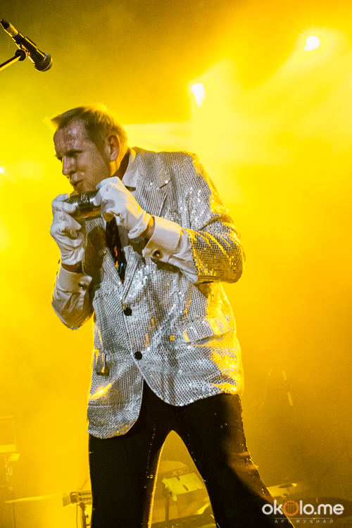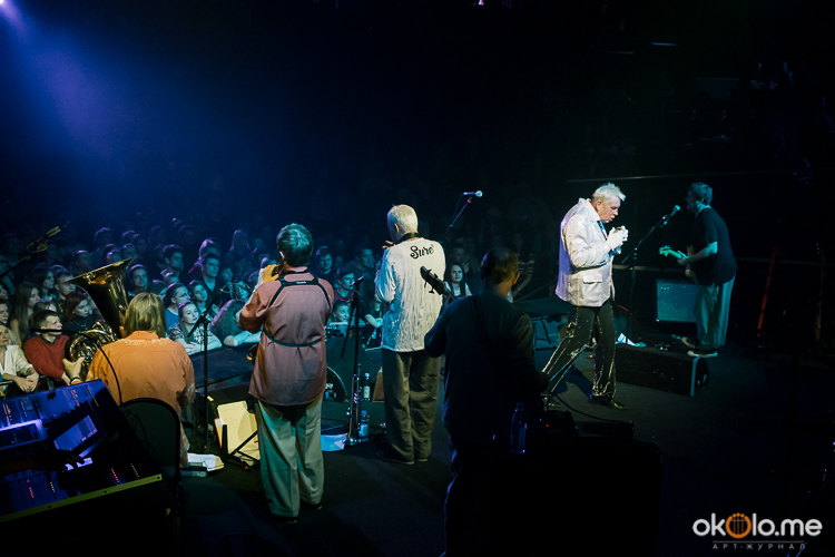Концерты «Аукцыона», которому в следующем году исполнится сорок лет, случаются в родном для него Петербурге с регулярным постоянством. В этот раз выступление группы прошло в Aurora Concert Hall. Концерт стал высказыванием коллектива в его классическом стиле. Люди, которые видели не одно выступление музыкантов, легко представят картинку: в центре раскачивается высокий сутулый в блестяще-белом пиджаке Гаркуша, слева с гитарой Леня Федоров в неизменном облачении – широкие штаны-шаровары и футболка, справа – духовой микро-оркестр, позади ударные, клавишные и если повезет – в своем фирменном раскачивающемся движении контрабасист Владимир Волков, с которым группу связывает давняя дружба.