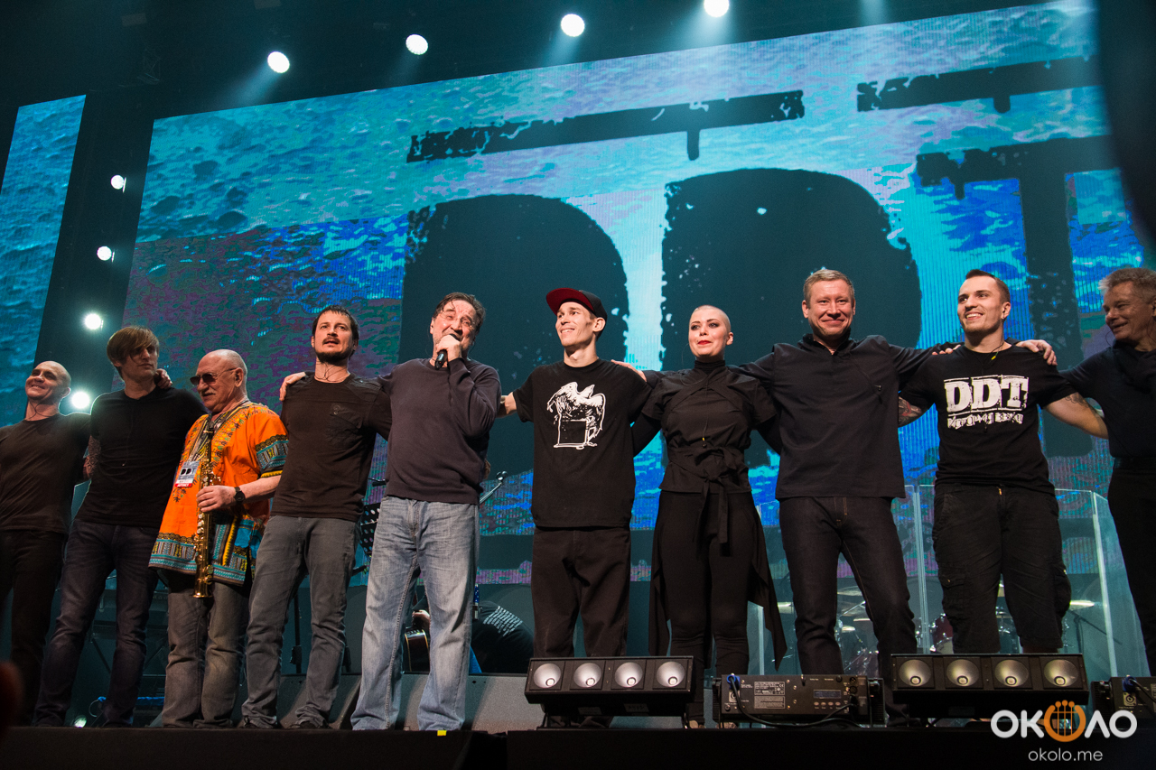 Тот, кто давно любит группу «ДДТ», знает, что Юрий Юлианович и его команда не дают проходных концертов. Каждое выступление — с открытым сердцем. Это прямой и честный диалог со слушателями, обмен эмоциями. Пусть это получасовое выступление на открытии фестиваля — это не халтура, а любовь, выраженная в звуке, это песни хором, это объединение совершенно разных людей друг с другом, их единение. Но концерт 11 марта стал лучшим за последние годы? Этому способствовал и подбор композиций, видеоряд, включающий и записи из хроники, и первые клипы. Думали ли мы, гадали ли, что когда-нибудь услышим в живом исполнении «Мама, я любера люблю» или «Милиционер в рок-клубе»? Это молодость, это первые шаги в музыке, это вера в то, что «нас много и мы обязательно победим«. Это восьмидесятые в творчестве ДДТ.