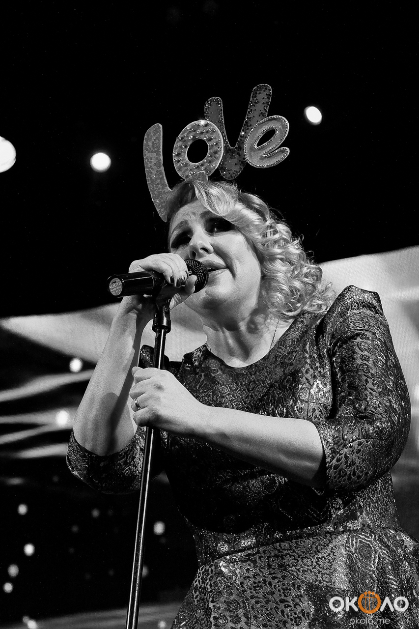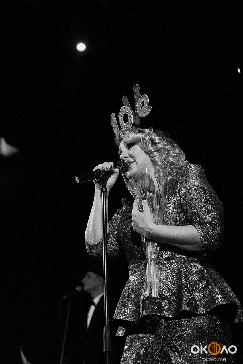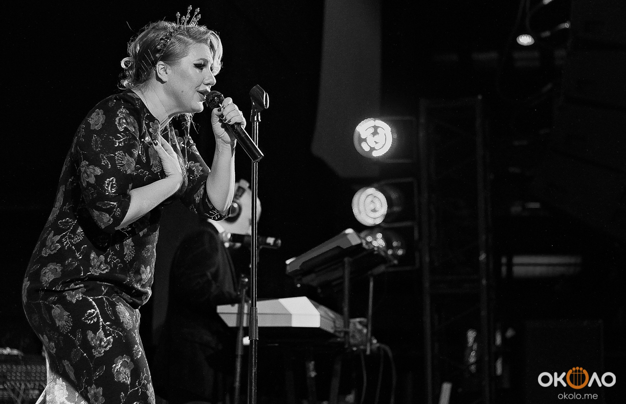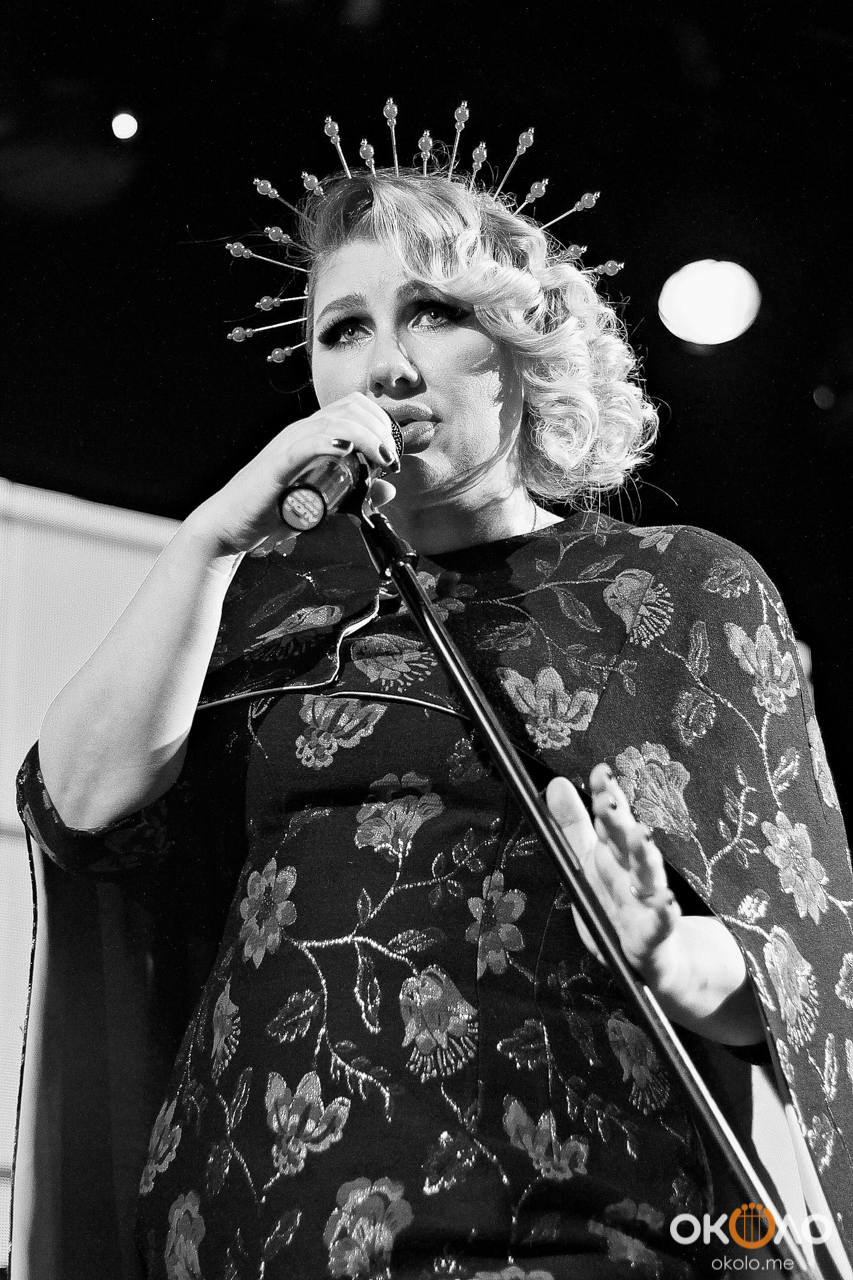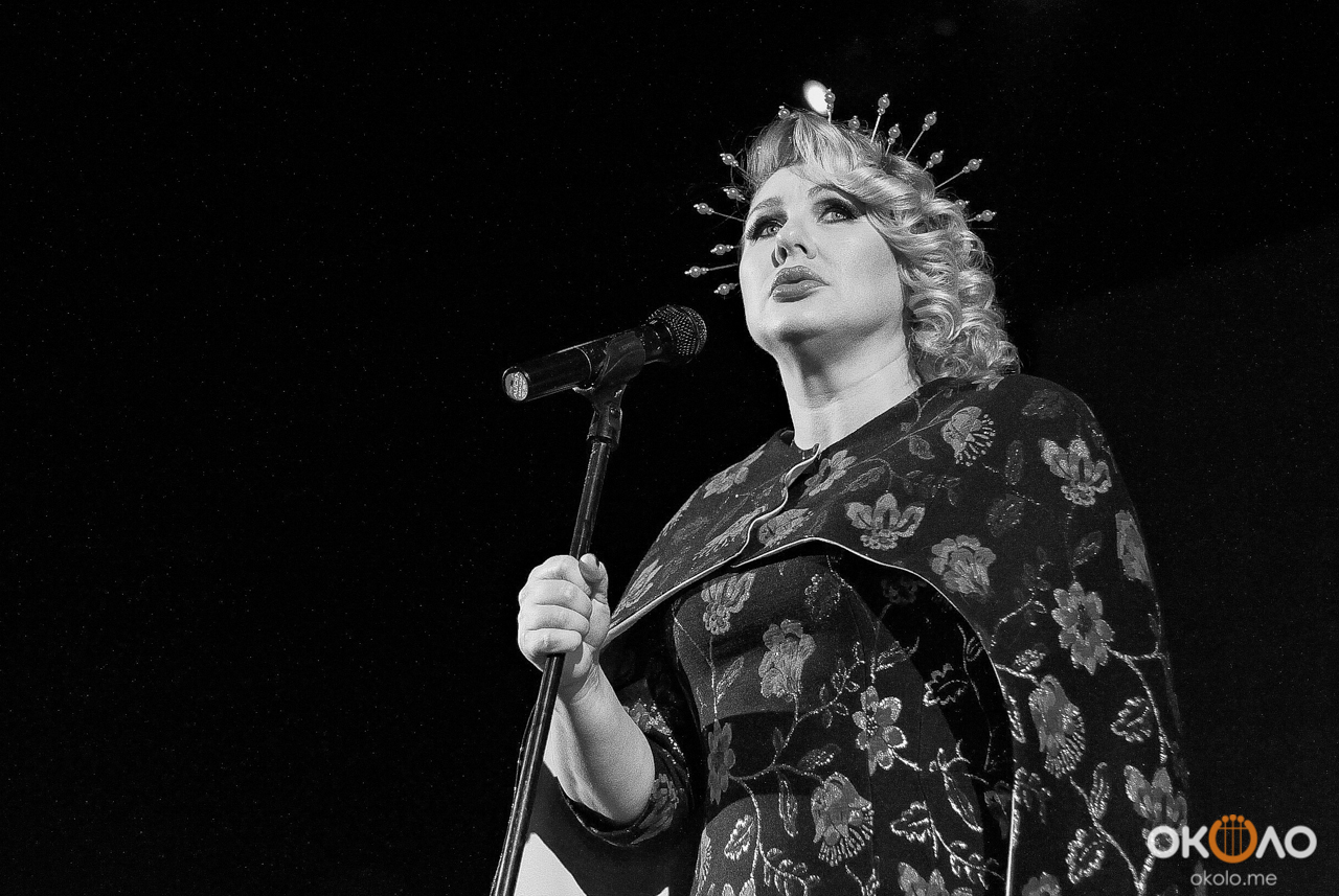 И тут появляется она — восхитительная и непохожая на других Ева Польна. В шикарном золотисто-красном платье с накидкой и с головным убором похожим на корону Ундины. Выступление певица начала с песни «Драма». Абсурдно, но, как человек, выросший на песнях Евы и ни разу не бывавший на её концертах до этого, я думала, что название песни, будет как раз соответствовать атмосфере. И только я приготовилась взгрустнуть, вспоминая былую молодость, как тут же меня ждала приятная неожиданность: несмотря на лиричные песни о любви, сама певица оказалась совсем иной. Яркая, раскрепощённая, прямолинейная, сильная женщина с отличным чувством юмора. А её пластике можно только позавидовать!
