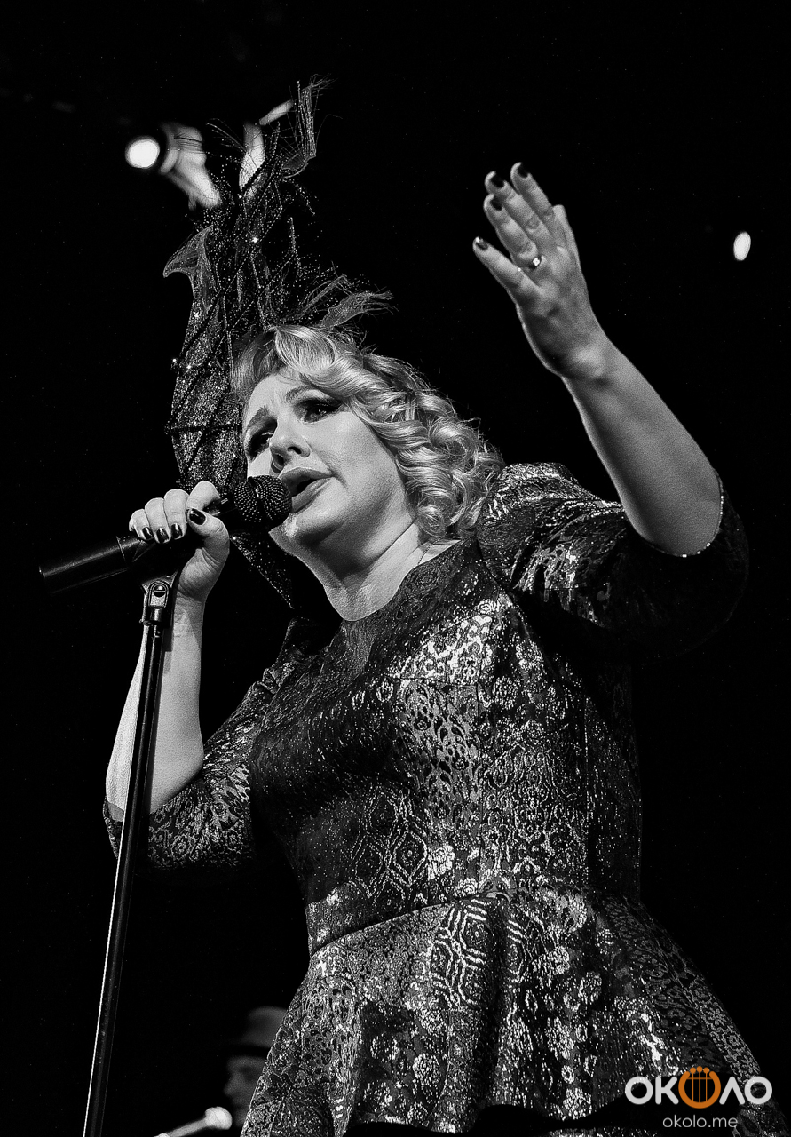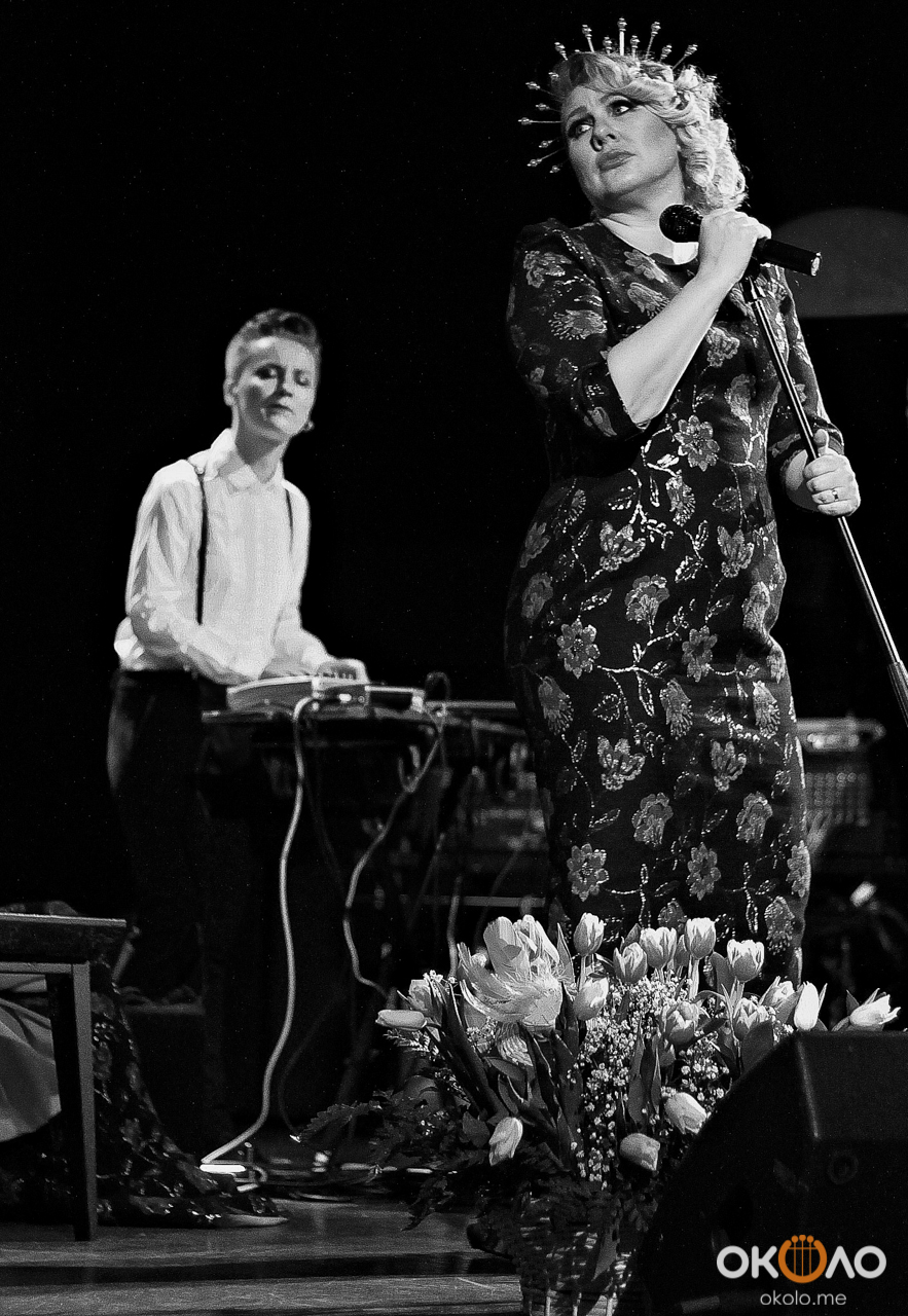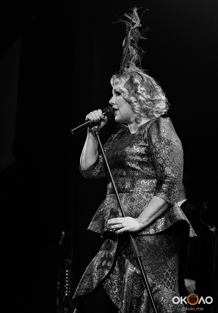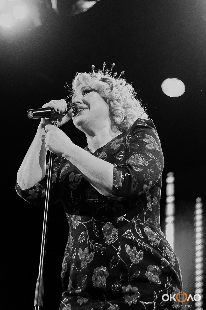 И тут появляется она — восхитительная и непохожая на других Ева Польна. В шикарном золотисто-красном платье с накидкой и с головным убором похожим на корону Ундины. Выступление певица начала с песни «Драма». Абсурдно, но, как человек, выросший на песнях Евы и ни разу не бывавший на её концертах до этого, я думала, что название песни, будет как раз соответствовать атмосфере. И только я приготовилась взгрустнуть, вспоминая былую молодость, как тут же меня ждала приятная неожиданность: несмотря на лиричные песни о любви, сама певица оказалась совсем иной. Яркая, раскрепощённая, прямолинейная, сильная женщина с отличным чувством юмора. А её пластике можно только позавидовать!