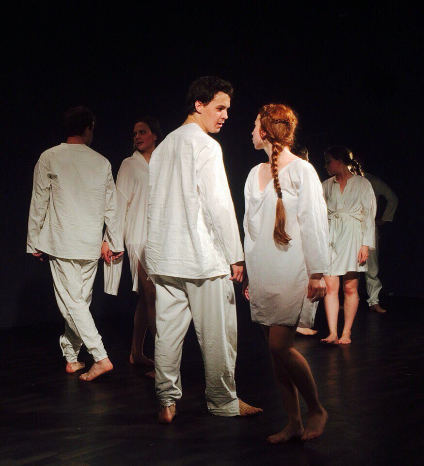 – Тоже помогали. Когда кто-то репетирует, остальные смотрят и помогают советами, предлагают свои идеи. «Героя», например, Сергей Дмитриевич создавал с Артемом Пономаренко и девчатами, которые участвовали в этом этюде. Собрались в воскресение раньше всех и сделали. «Пленника» придумал я, прочитав Пушкина, «Талант» – Катя Панасюк, «Привычку» с лентой – Богдан Гудыменко и Женя Кузнецова. В общем, Сергей Дмитриевич просто сказал: «Берите любую тему Вивальди и делайте этюды». Только общие этюды, такие как «Судьба», «Урок», «Мы», – он сам придумал. Это он лучше нас понимает. Вот так в сотворчестве вместе мы всё и придумали.