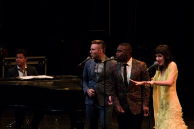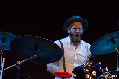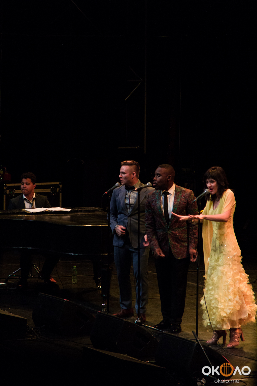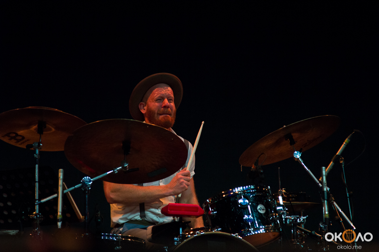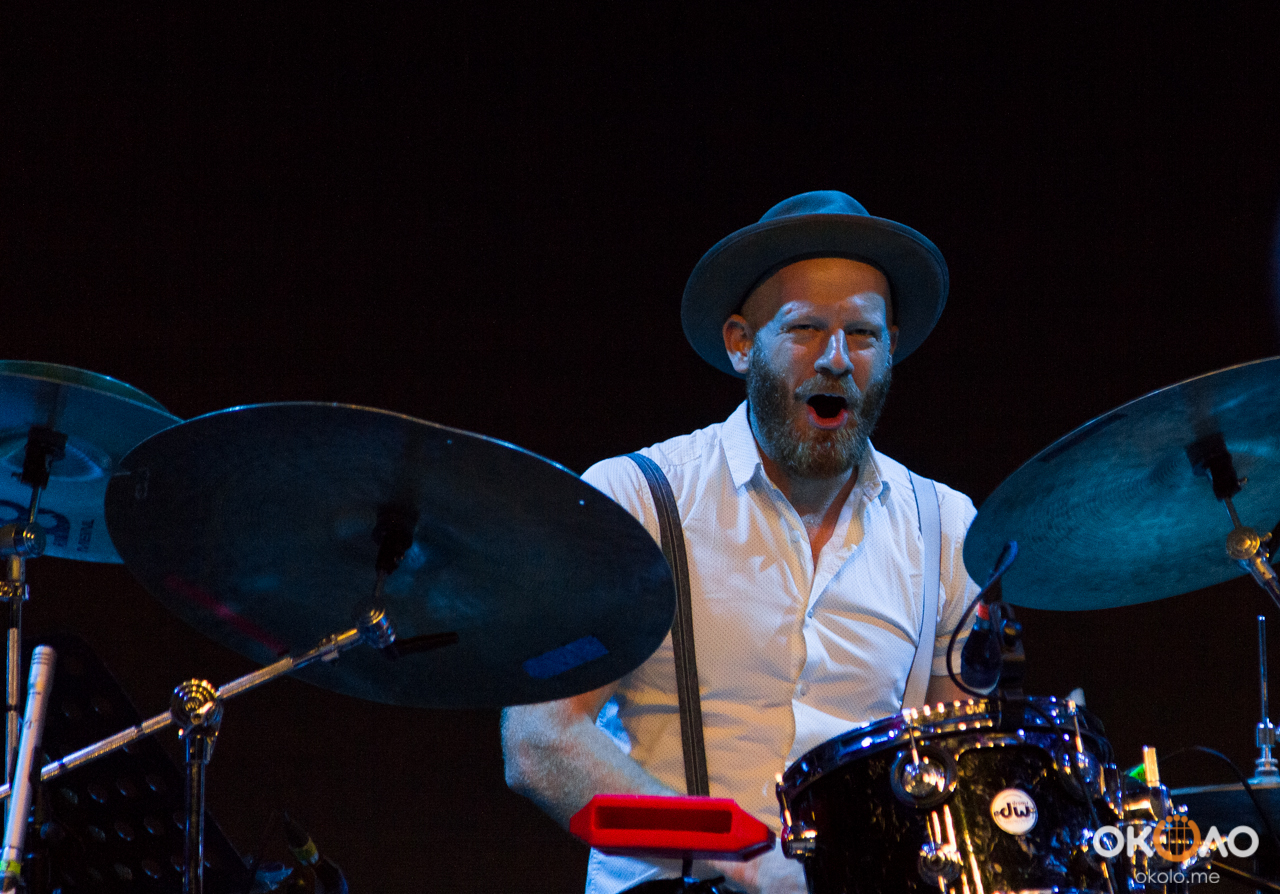 Музыканты были не менее интересны, чем вокалисты и принимали активное участие в шоу, время от времени оказываясь вместе с ними на авансцене. Ударная установка звучала совсем иначе, чем на рок-концерте: не было громыхания и выделения бас-барабана в центр микса. Даже когда барабанщик выходил на передний план и играл только в малый барабан, висящий на ремне, отсутствие ударной установки было не особо заметно, когда вся вступали все инструменты.