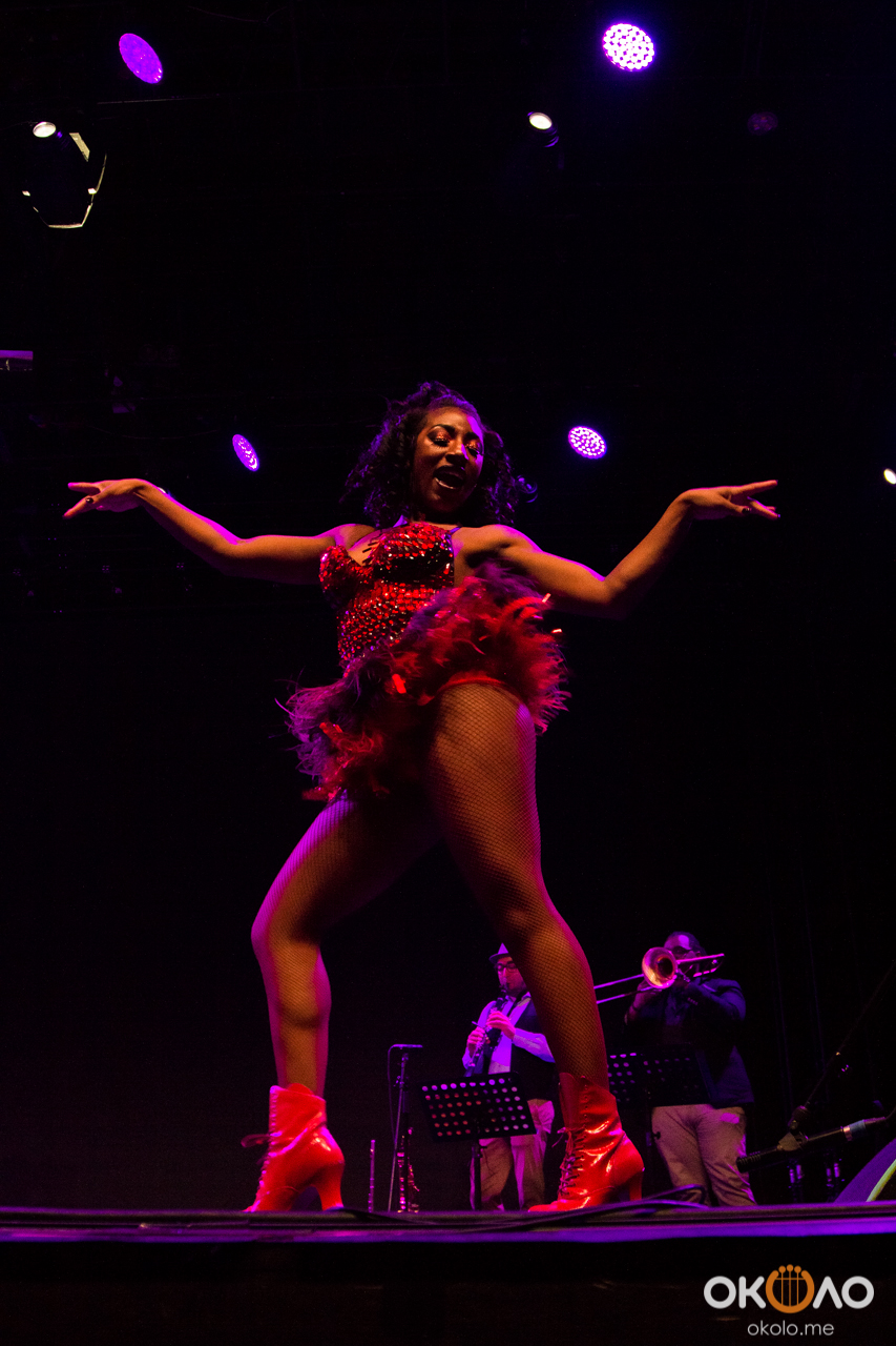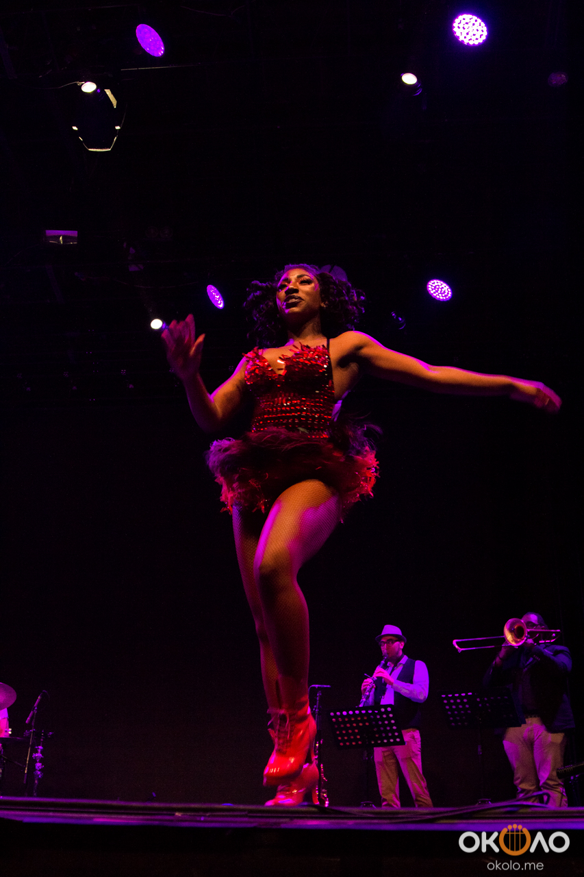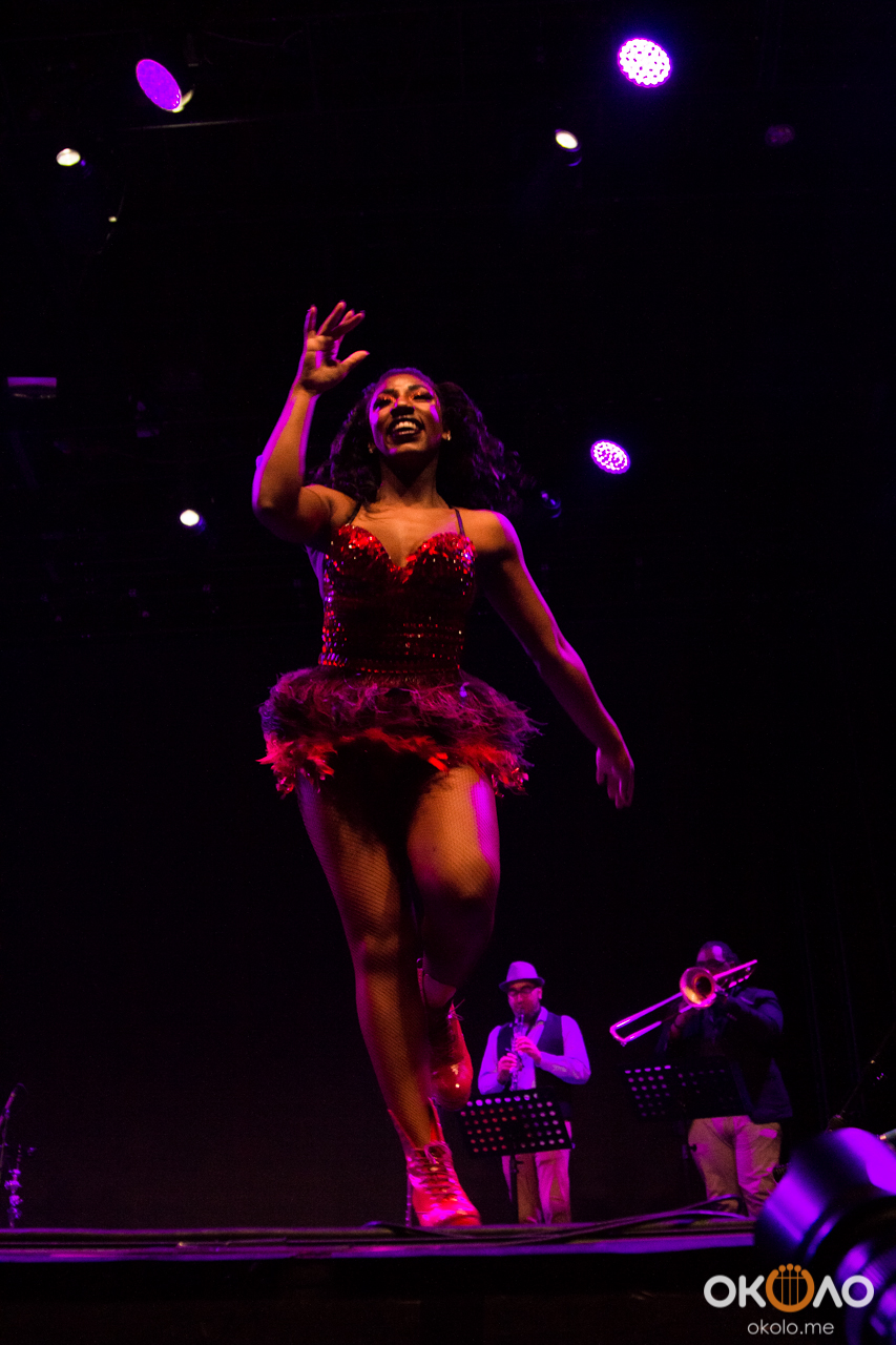Настоящим украшением сцены этим вечером стала актриса и дизайнер Анисса Ли (Anissa Lee) – ее смелые наряды и завораживающая чечетка стали великолепным дополнением шоу. В коктейль из ирландского танца и афроамериканских танцевальных традиций Анисса добавила нотки бразильского карнавала!