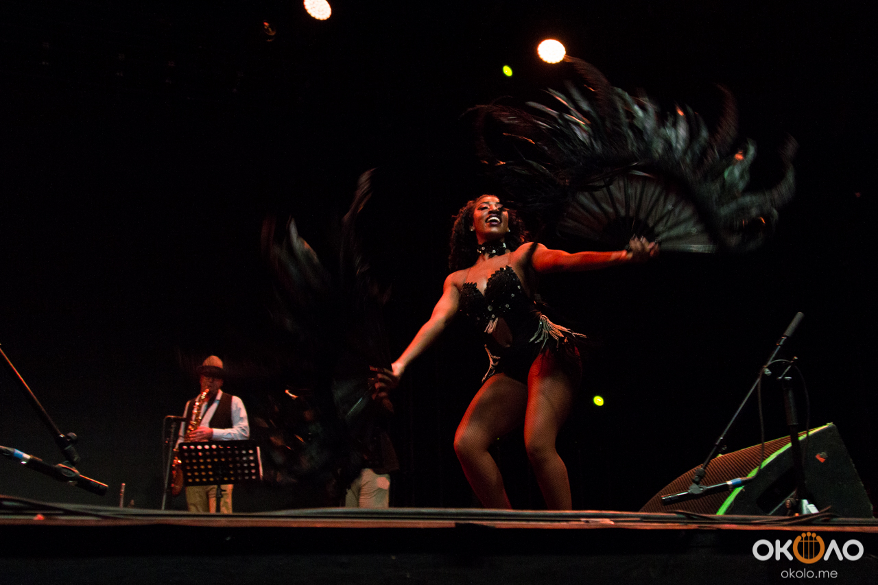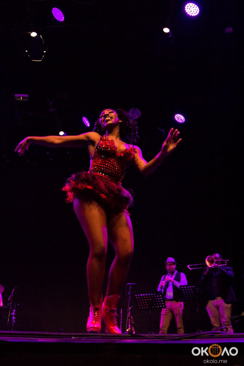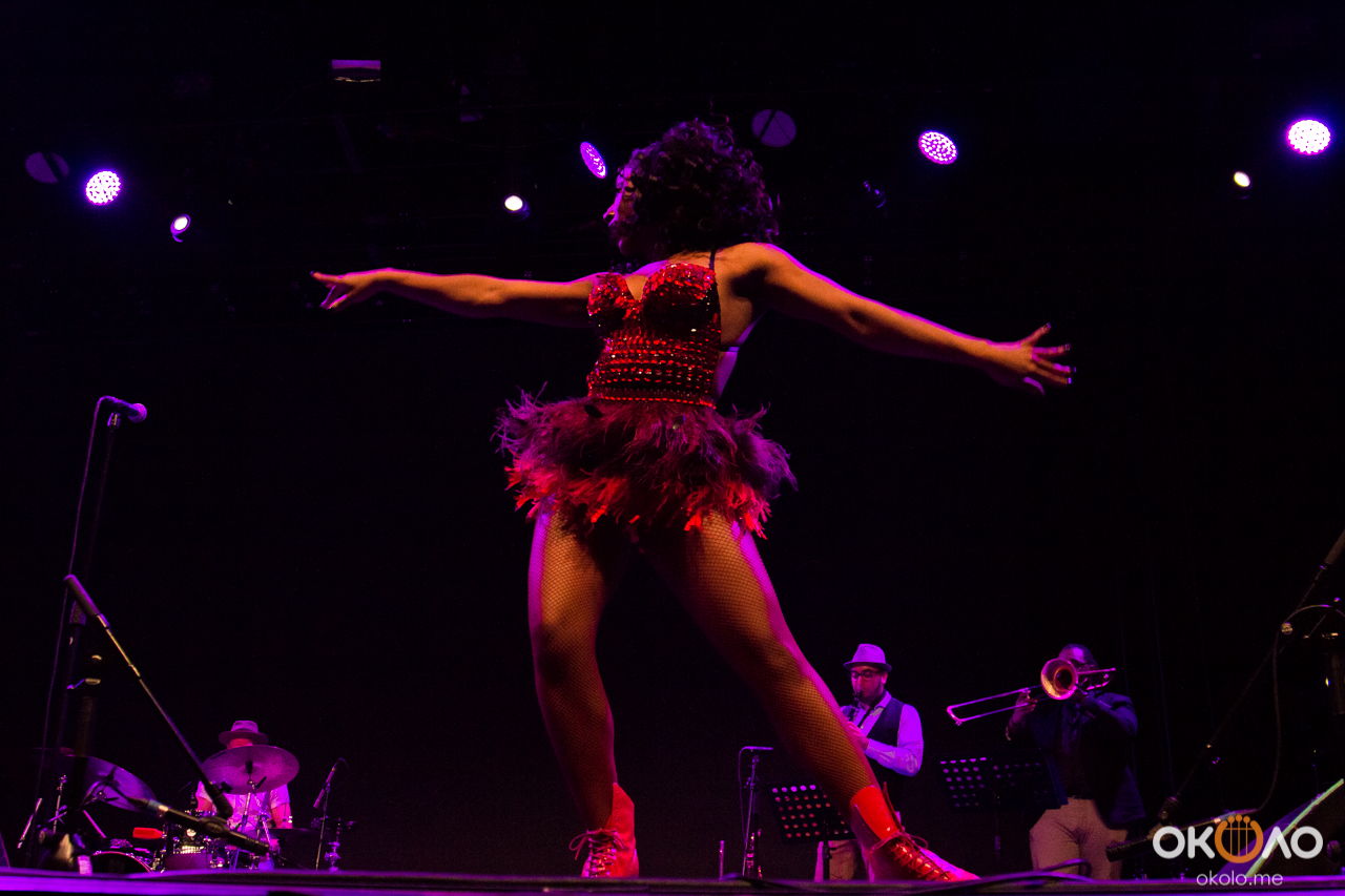 Настоящим украшением сцены этим вечером стала актриса и дизайнер Анисса Ли (Anissa Lee) – ее смелые наряды и завораживающая чечетка стали великолепным дополнением шоу. В коктейль из ирландского танца и афроамериканских танцевальных традиций Анисса добавила нотки бразильского карнавала!