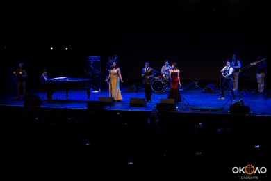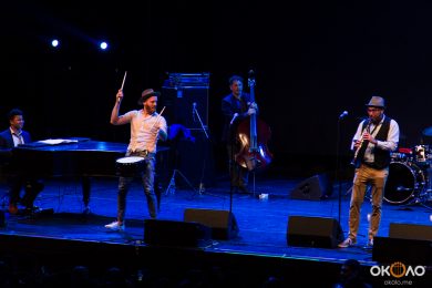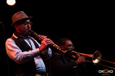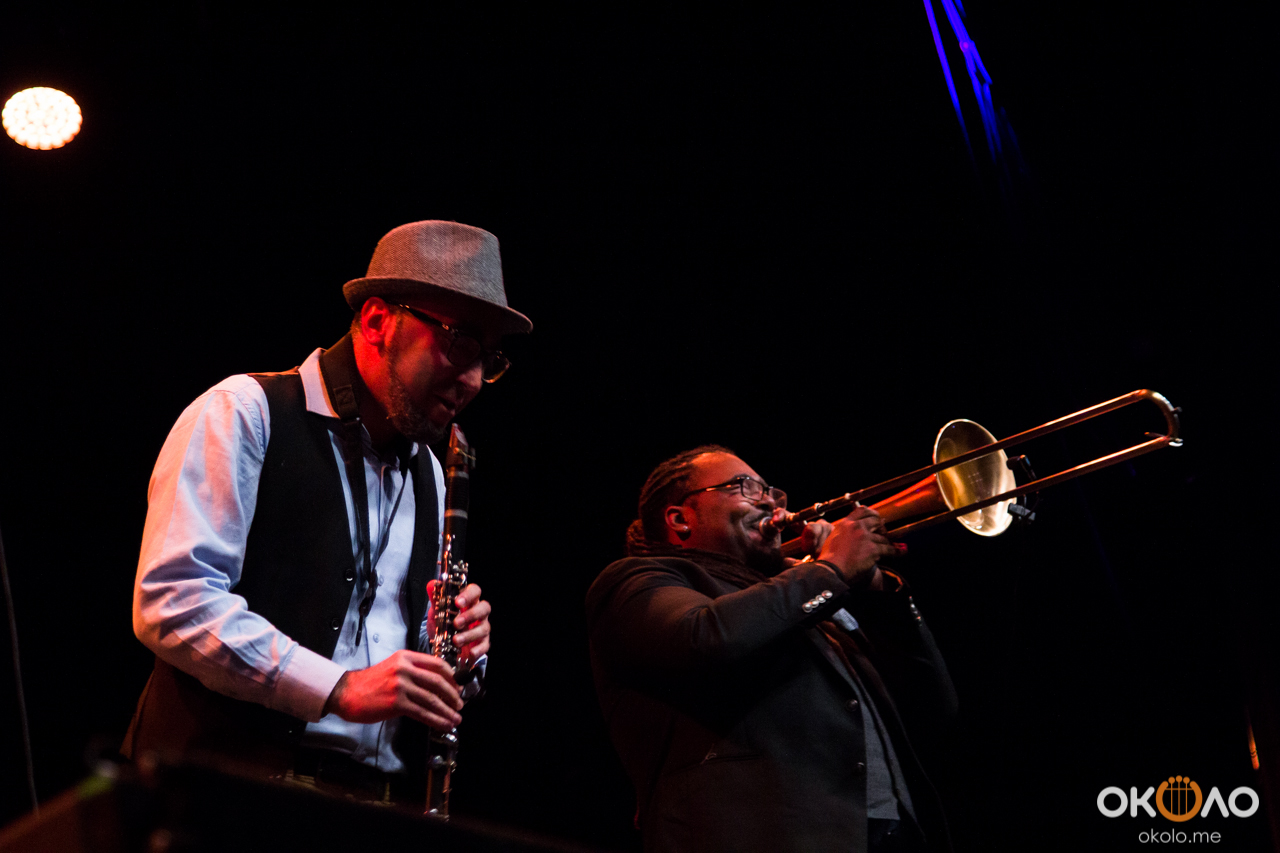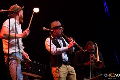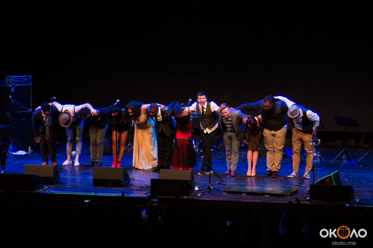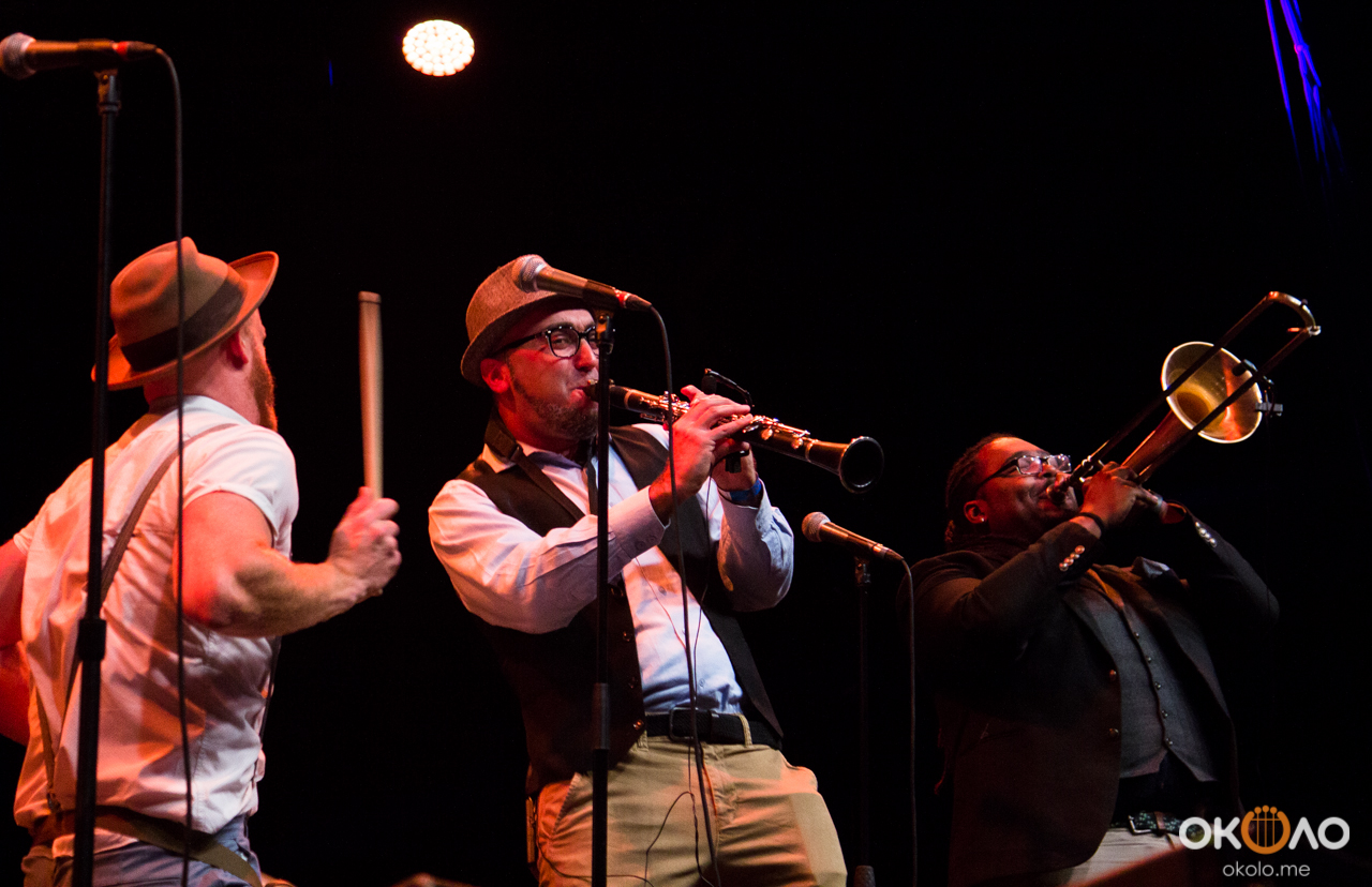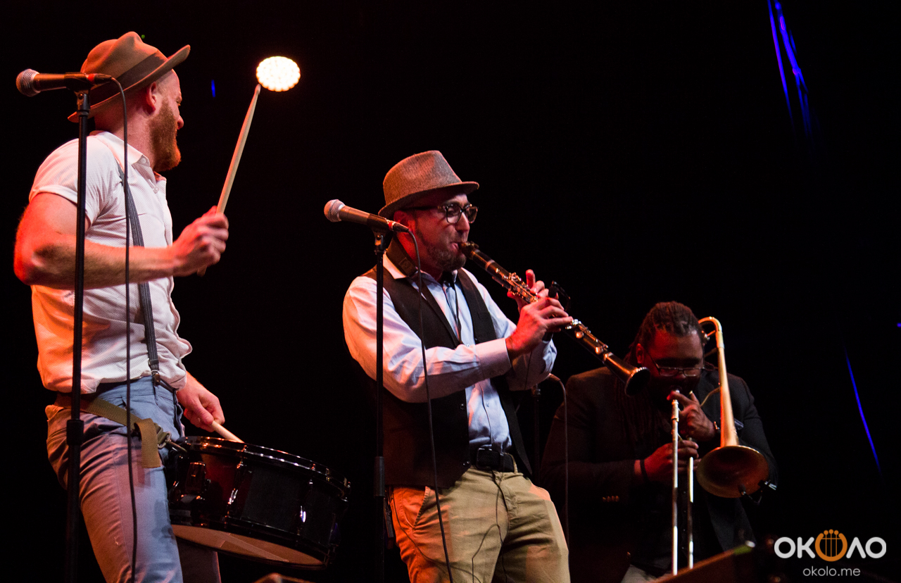 Было заметно, что музыканты играют без ушного мониторинга, не под клик, а только на собственном живом чувстве ритма и умению слушать друг друга. Особую атмосферу создавало акустическое звучание ансамбля: рояль вместо электронных клавиш, контрабас вместо бас-гитары. Динамике происходящему добавляла и постоянна смена участников музыкальных номеров: вот звучит песня под аккомпанемент рояля и контрабаса, а вот соло на кларнете под маршевый малый барабан, причем каждый из таких номеров заканчивался вступлением всего ансамбля.