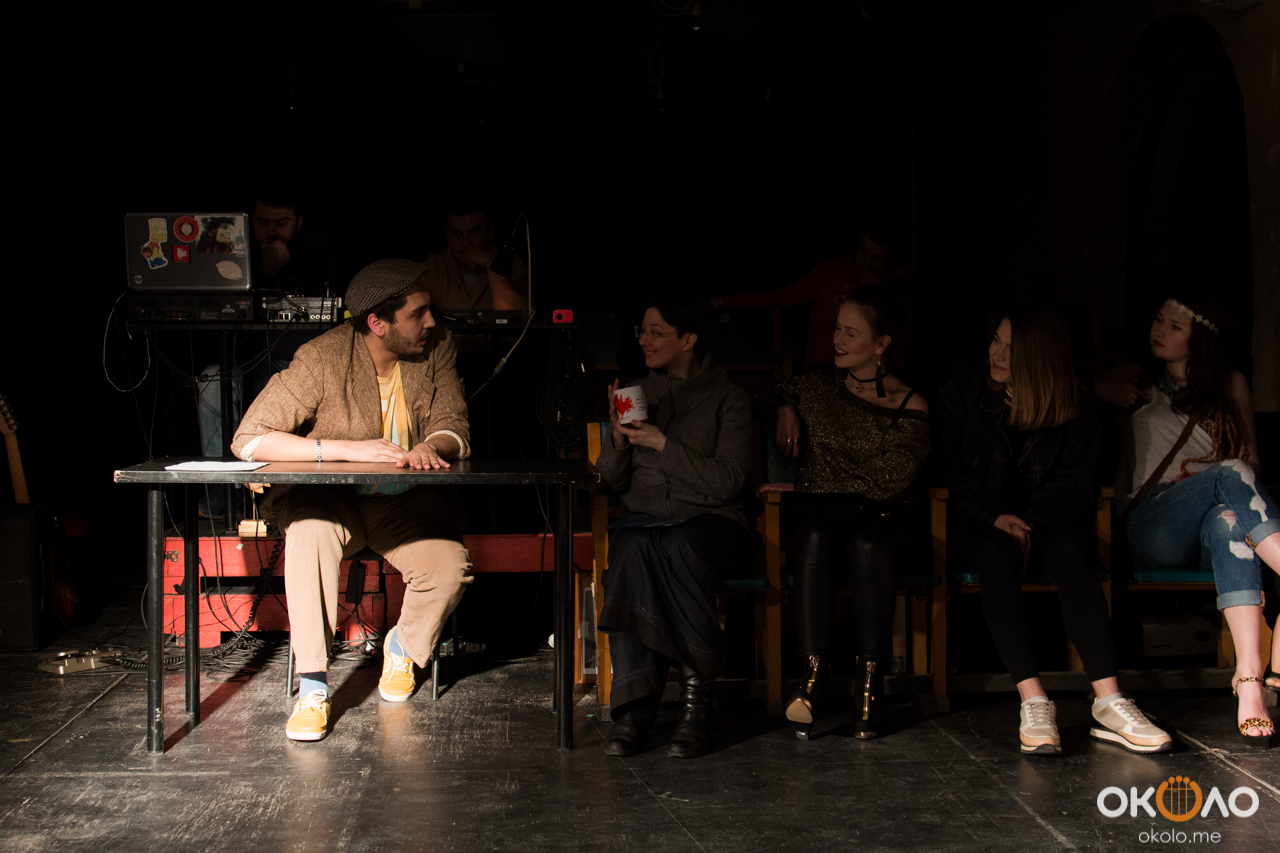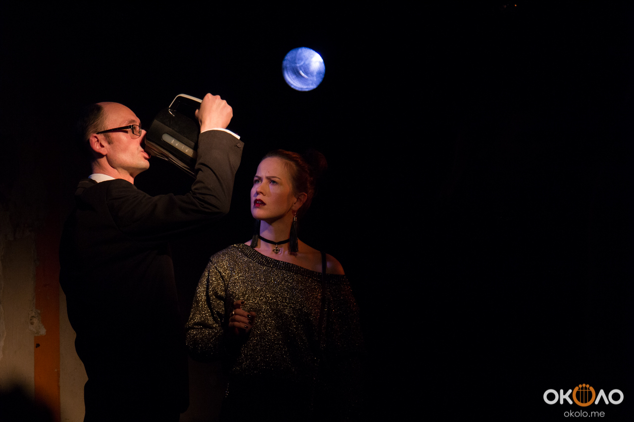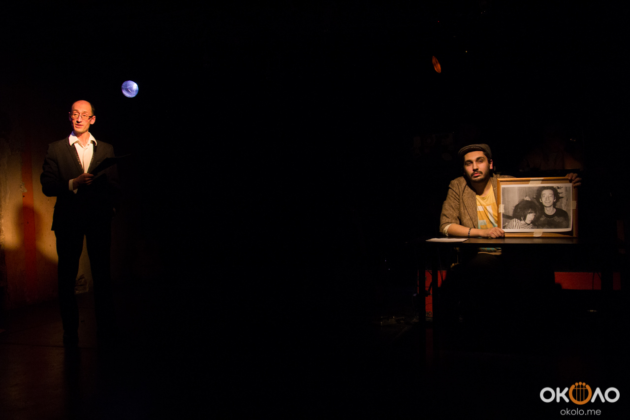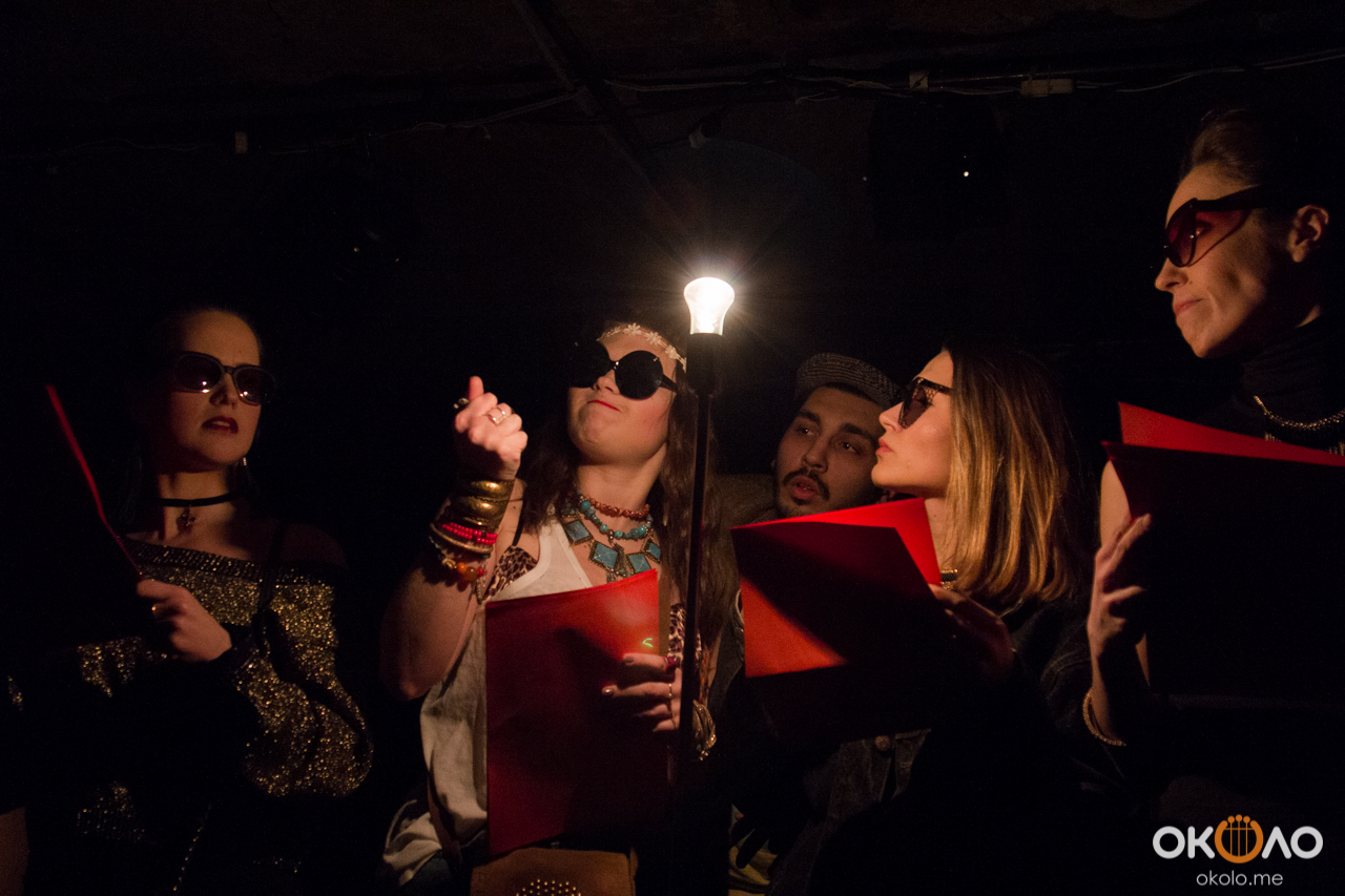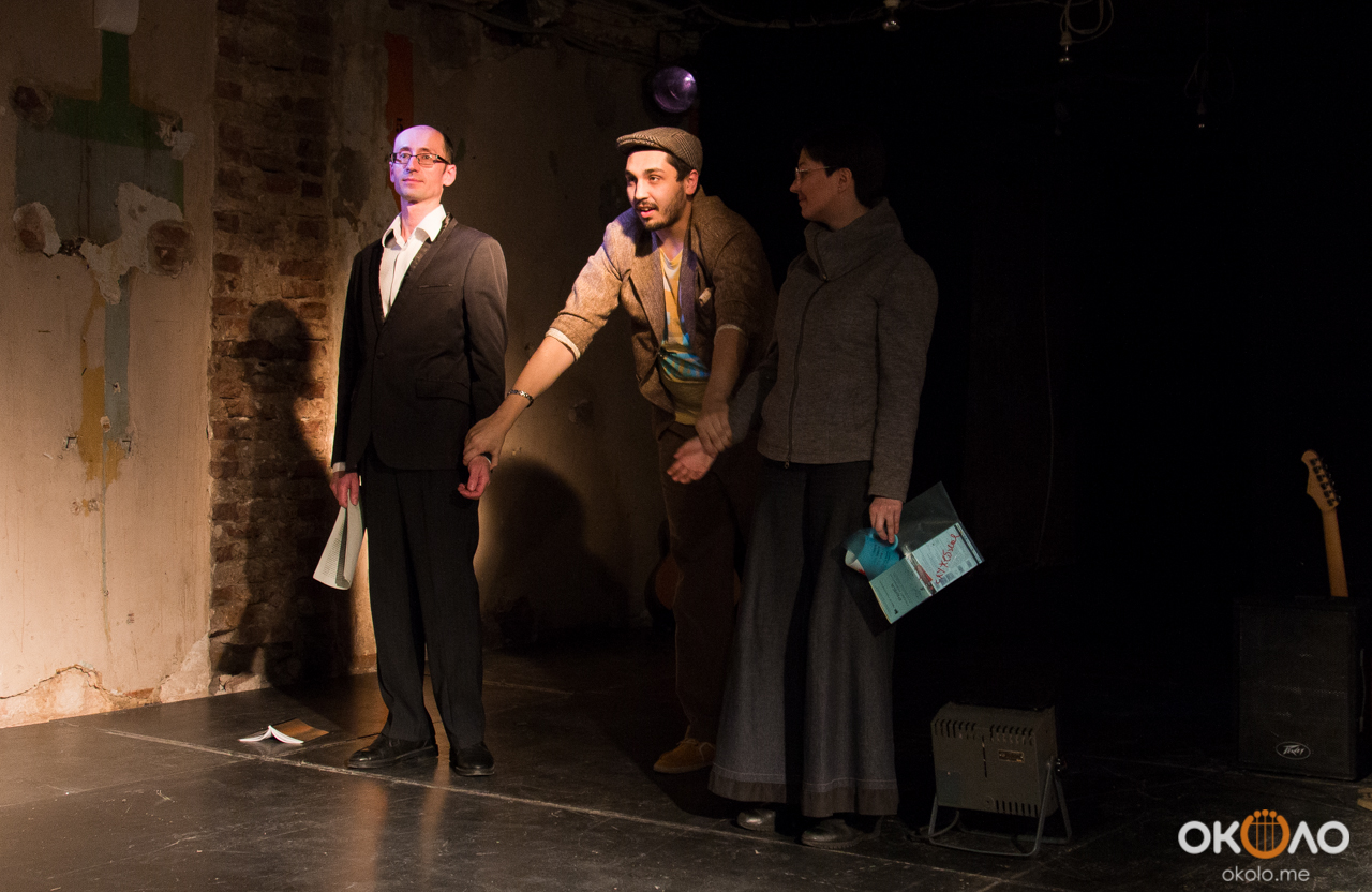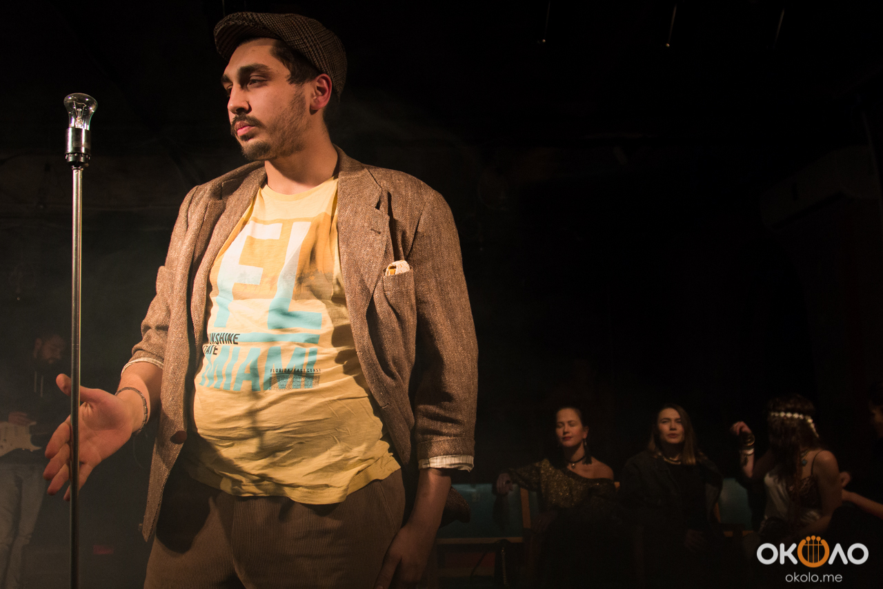 Пройдя в зал, зрители оказывались как бы на репетиции спектакля. Все было устроено так, чтобы границы реальности оказались максимально размыты, а четвертая стена снесена напрочь. Актрисы, они же хор, они же зрители, они же этапы из жизни лирического героя, появившиеся на сцене первыми, усаживались в кресла из зрительного зала, установленные на сцене.