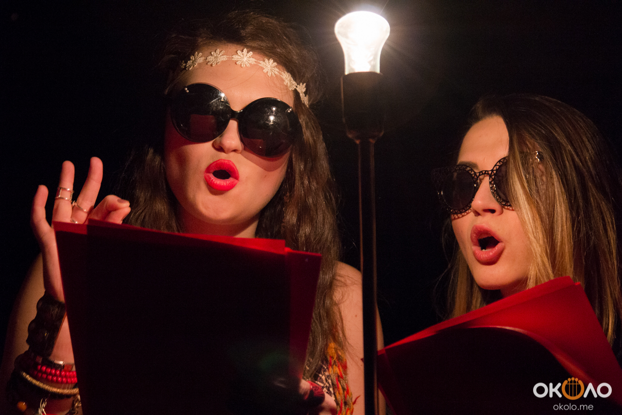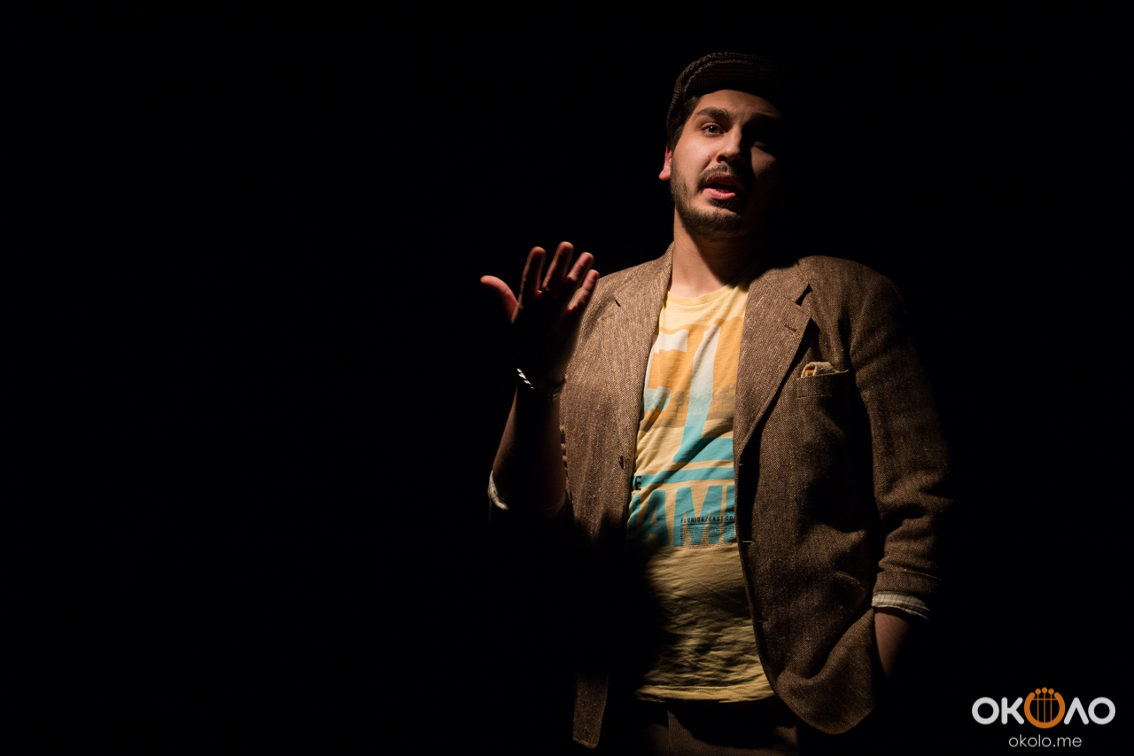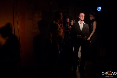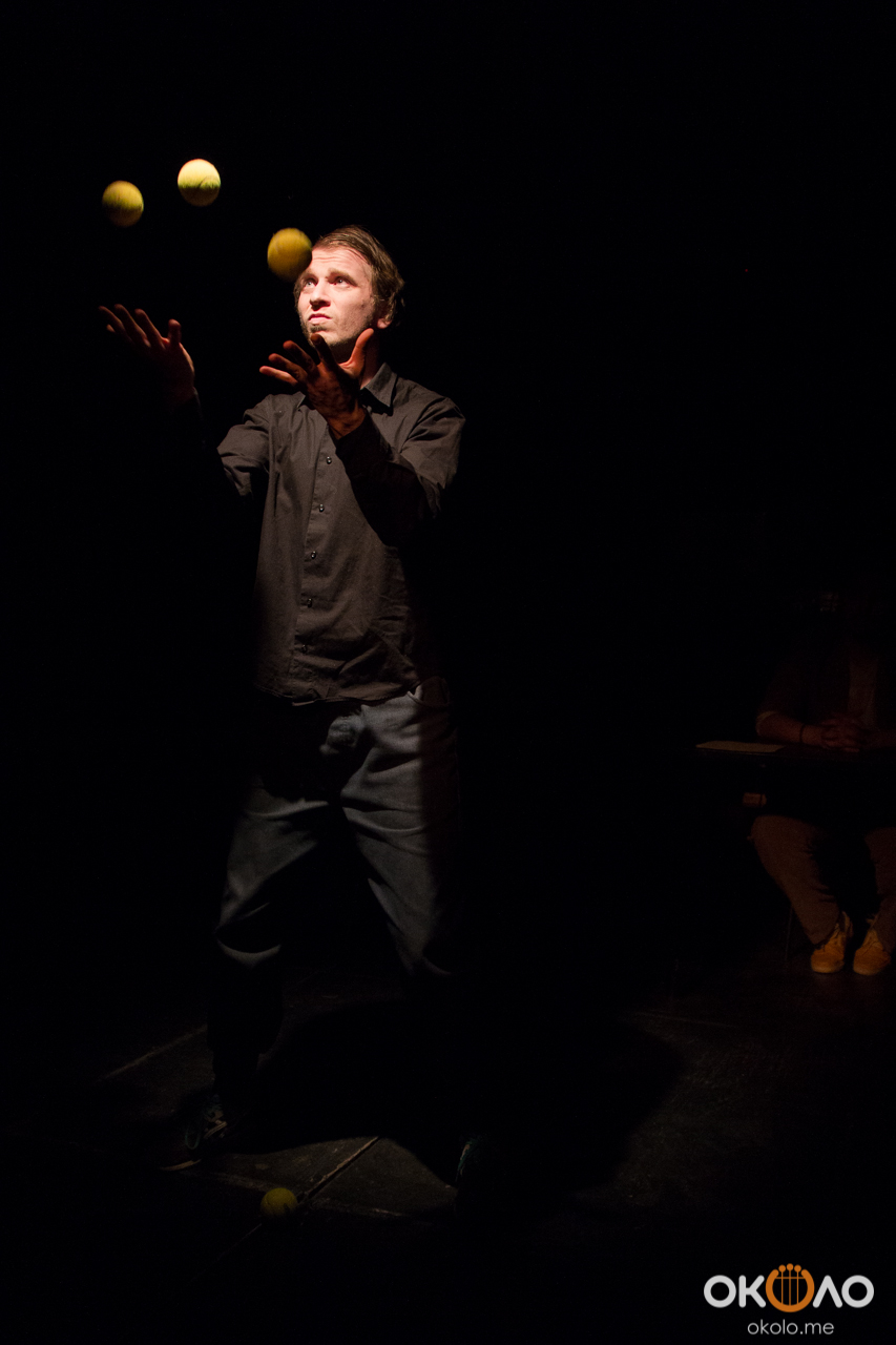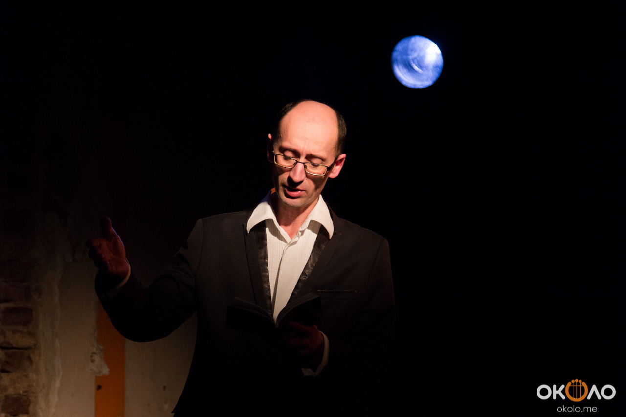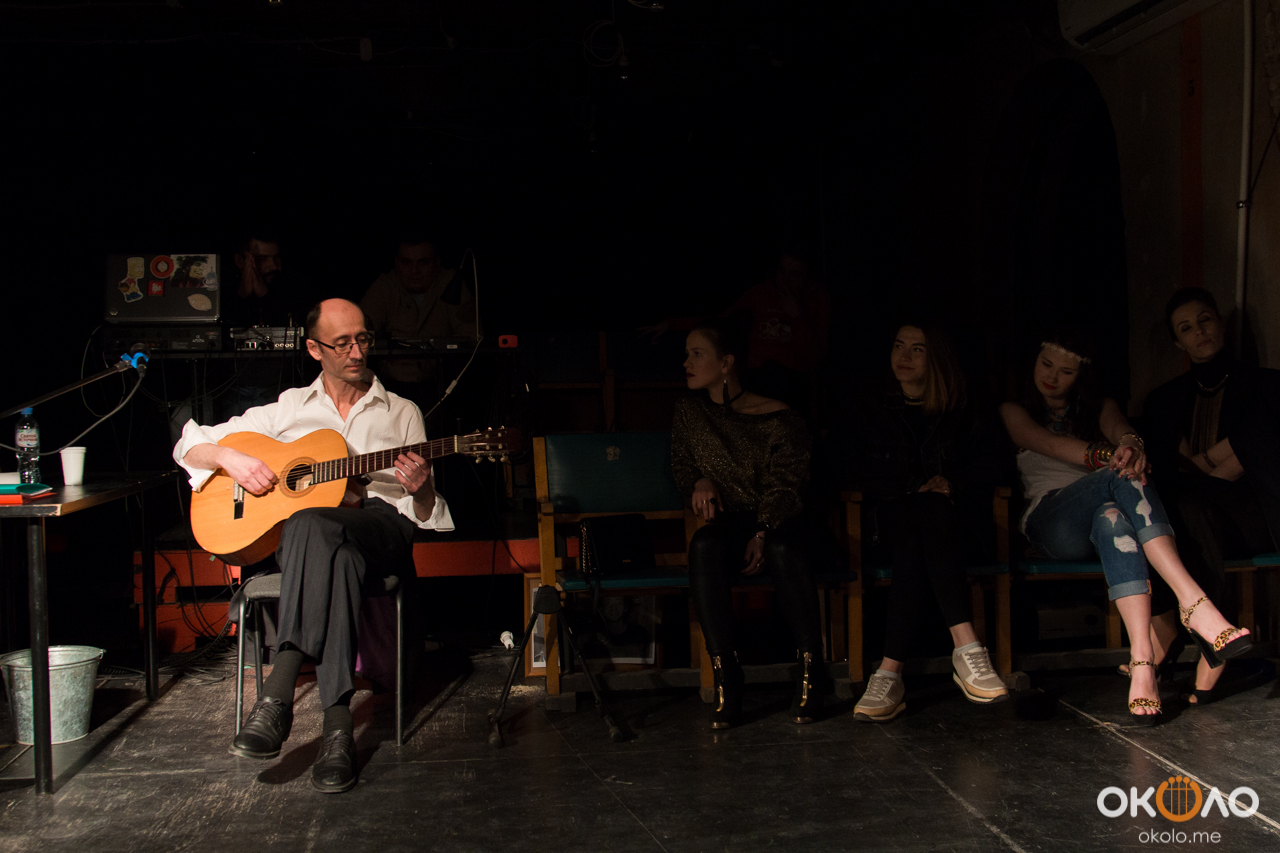 Пройдя в зал, зрители оказывались как бы на репетиции спектакля. Все было устроено так, чтобы границы реальности оказались максимально размыты, а четвертая стена снесена напрочь. Актрисы, они же хор, они же зрители, они же этапы из жизни лирического героя, появившиеся на сцене первыми, усаживались в кресла из зрительного зала, установленные на сцене.