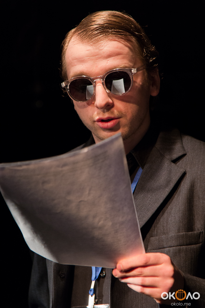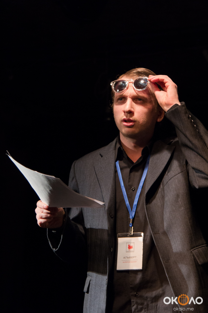 Режиссер Артем Томилов не только давал инструкции актерам и техникам в процессе спектакля, жонглировал, тушил пожары, но и сам являлся одним из главных действующих лиц постановки, наряду со своим альтер-эго — эффективным менеджером Альбертом Коноваловым. Даже технические работники сцены стали полноценными участниками постмодернисткого многопланового перфоманса.