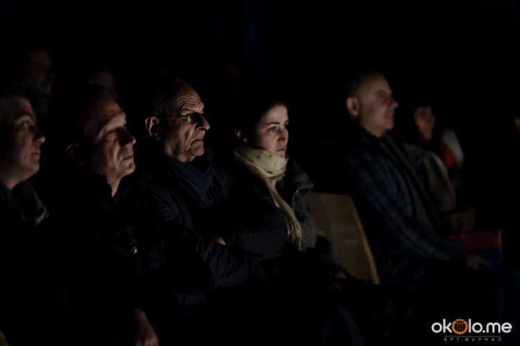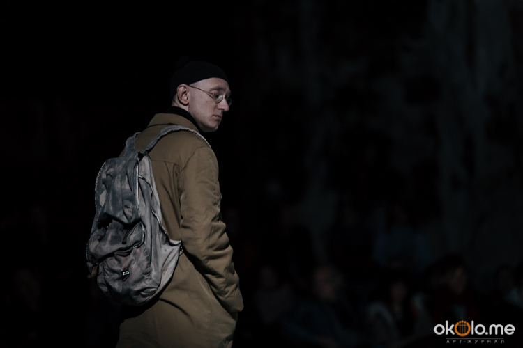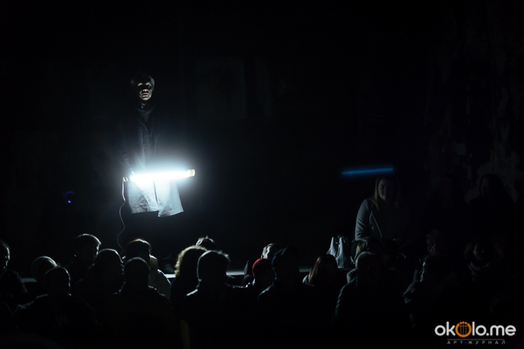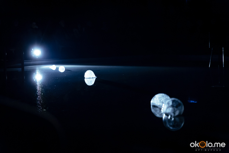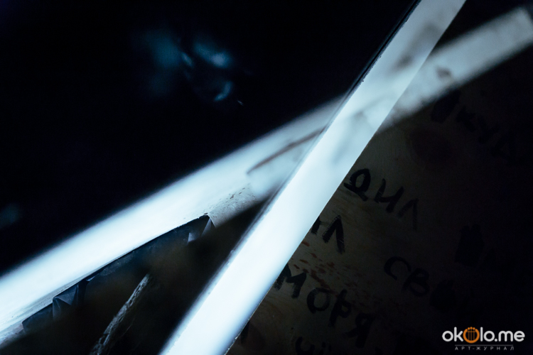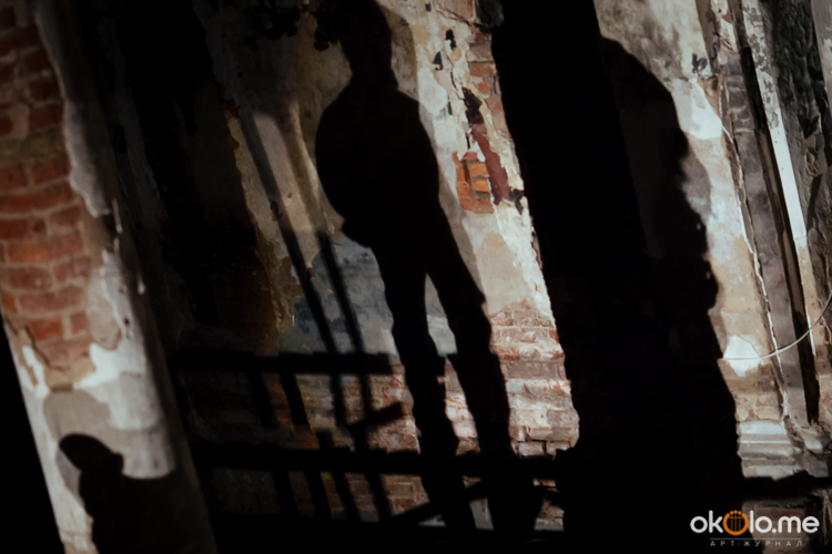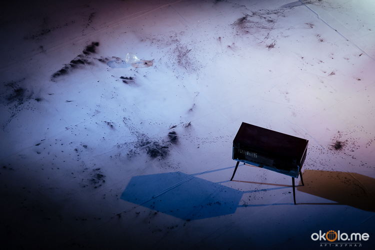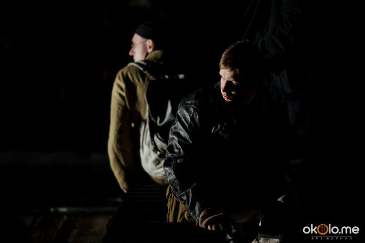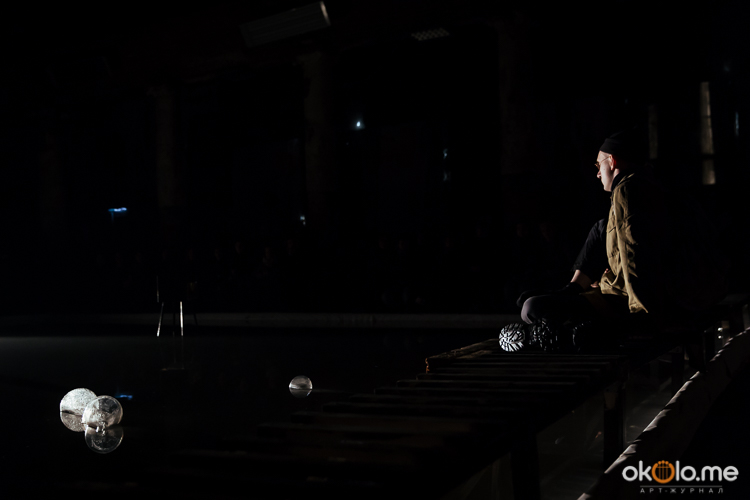 При входе на спектакль «Сталкеры» 12 марта зрителей напутствовали погрузиться в атмосферу. А обстановка, признаться, располагала. В центре зала, на полу, располагался резервуар с водой — а ведь вода имеет огромное значение в фильме Тарковского. Помните, как главный герой, Сталкер, всматривается в зеленоватую воду? Это медитация, это сосредоточенность на «здесь и сейчас». Замечательно, что спектакль происходил именно в Аннекирхе. Это особенное место, в котором пахнет сыростью и прошлым. Здесь когда-то молились Богу, потом смотрели фильмы, теперь показывают спектакль по мотивам великого кино.