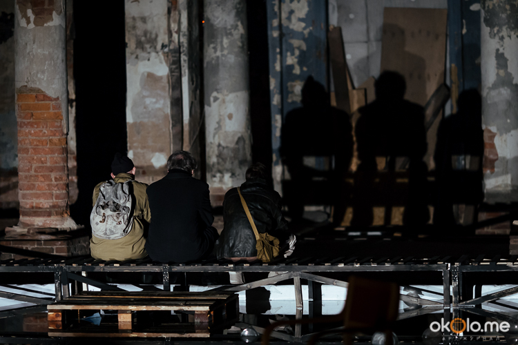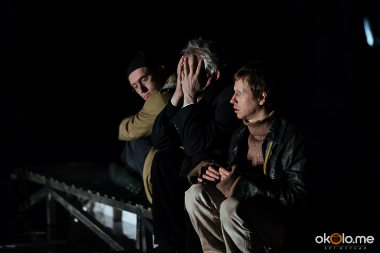 Что же это такое — вариации на тему Тарковского? Немного скучной фактической информации для начала. Спектакль «Сталкеры» был создан для фестиваля «Точка доступа» 2016 года драматургами Алексеем Слюсарчуком и Максимом Курочкиным, а также актерами Борисом Павловичем, Александром Машановым и Евгением Анисимовым: они играют Профессора, Писателя и Сталкера, в фильме эти роли исполнили, как мы помним, Александр Кайдановский, Анатолий Солоницын и Николай Гринько.