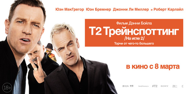 К семи часам вечера в зале погас свет, и на экране зажглась информация о возрастных ограничениях «0+». Я давно уже ничему не удивляюсь, но тут у меня возник закономерный вопрос: «Как можно снять вторую часть «Трейнспоттинга», так чтобы она получила рейтинг 0+?» Ответ не заставил себя долго ждать. 0+ получила вторая часть мультфильма про маленьких синих человечков, посмотреть которую настойчиво призывала не совсем таргетинговая реклама перед тем как начался показ. Потом показали еще пару трейлеров какого-то унылого голивудского фуфла и уже непосредственно перед началом предупреждение о том, что в фильме есть сцены употребления табака, что не должно восприниматься как призыв к действию и наверняка плохо для вашего здоровья. Кажется, я был единственным, кому это показалось смешным. Ну, хотя бы, в контексте того, что в «Т2» Бойл снял одну из самых красивых сцен употребления героина. Не говоря о многочисленных сценах употребления кокаина.