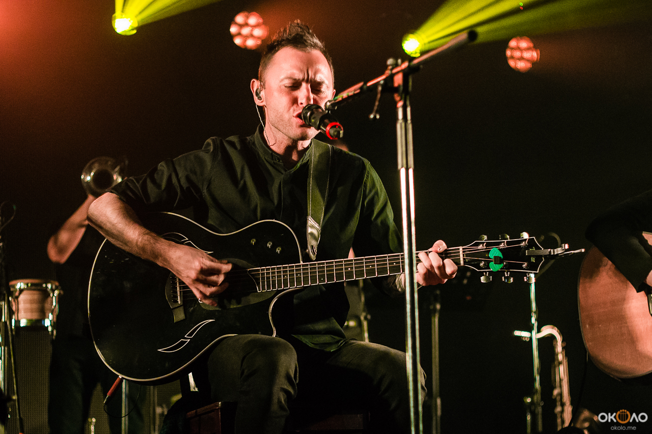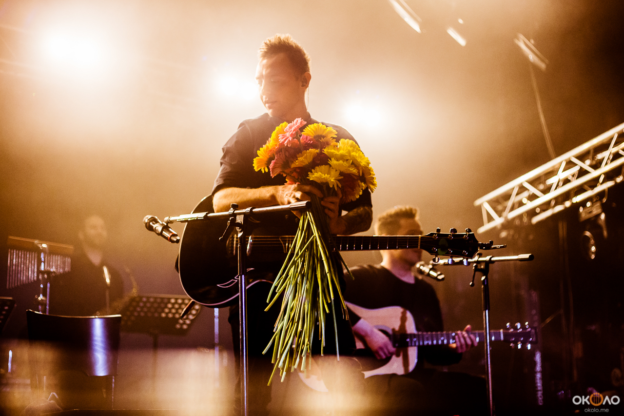 Начали ребята с песни «Никуда не надо», после были «Камикадзе», «Клятвы» и всеми так любимая «Я с тобой». В этот вечер Рома общался с публикой не так уж много, но было видно, что вокалист «Зверей» получал огромное удовольствие от происходящего: он постоянно улыбался и даже, сидя на стуле в руках с гитарой, умудрялся пританцовывать.