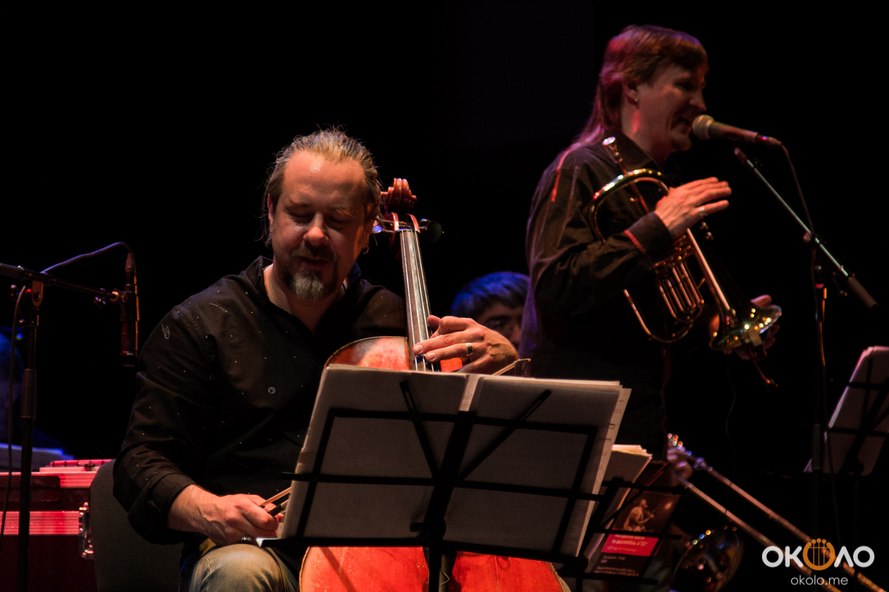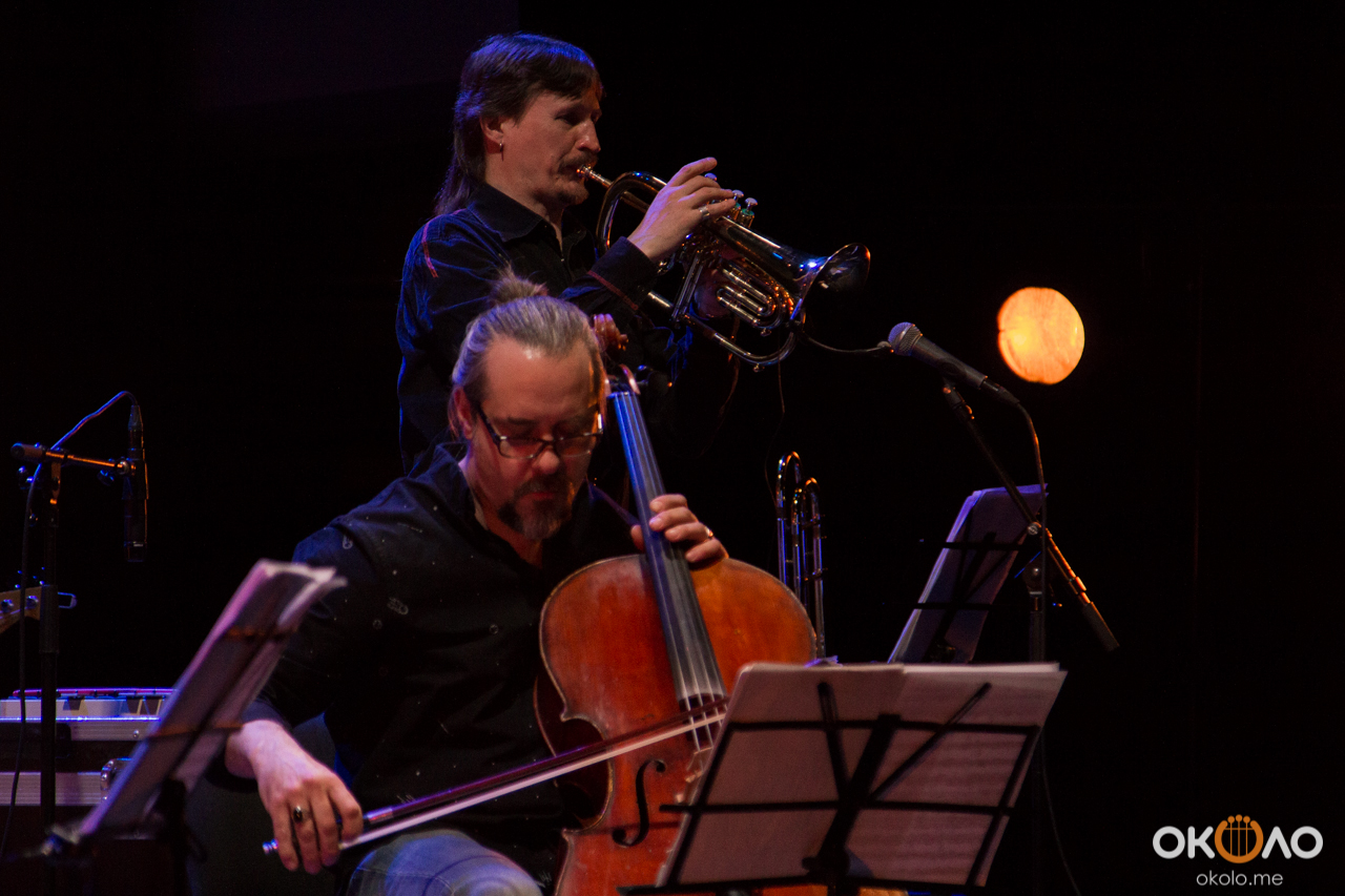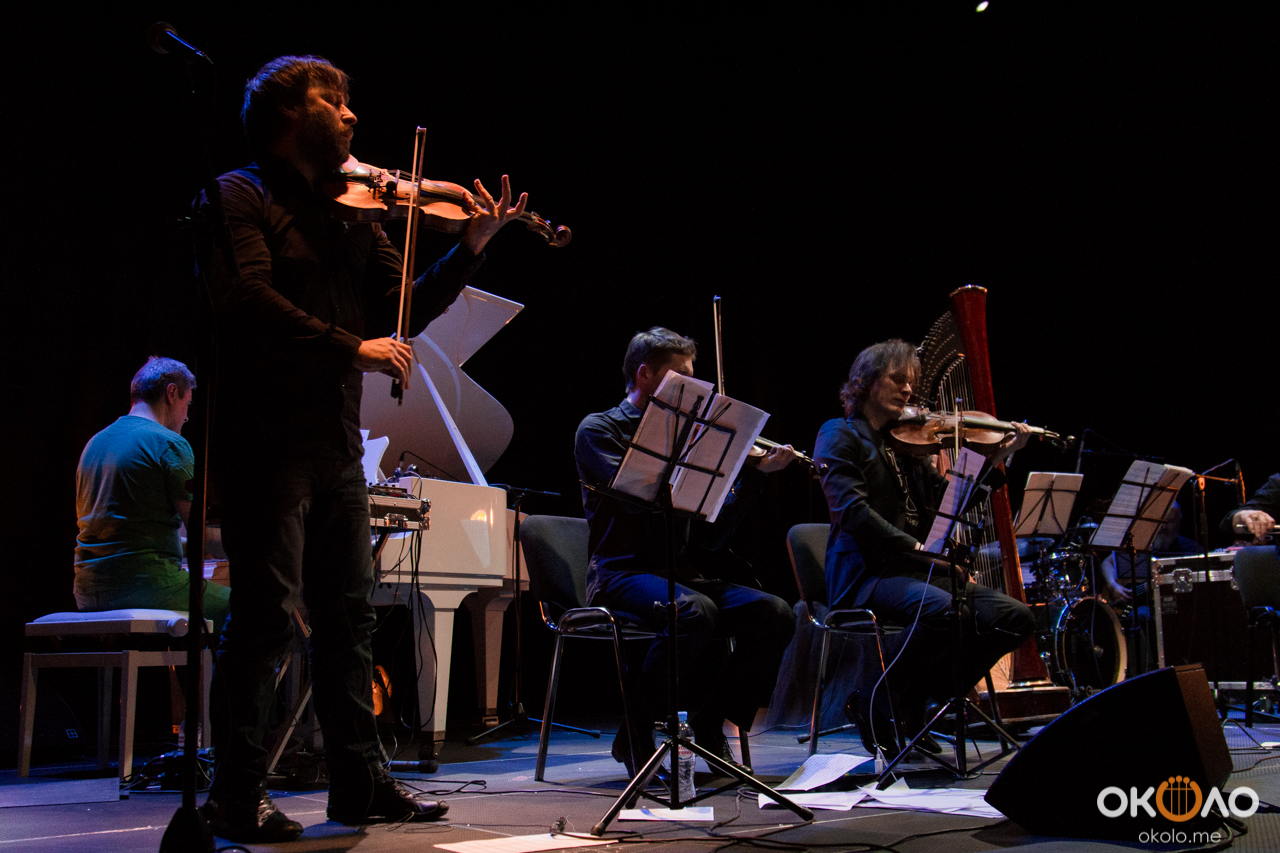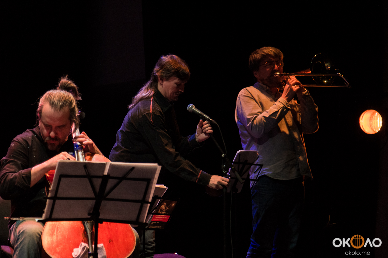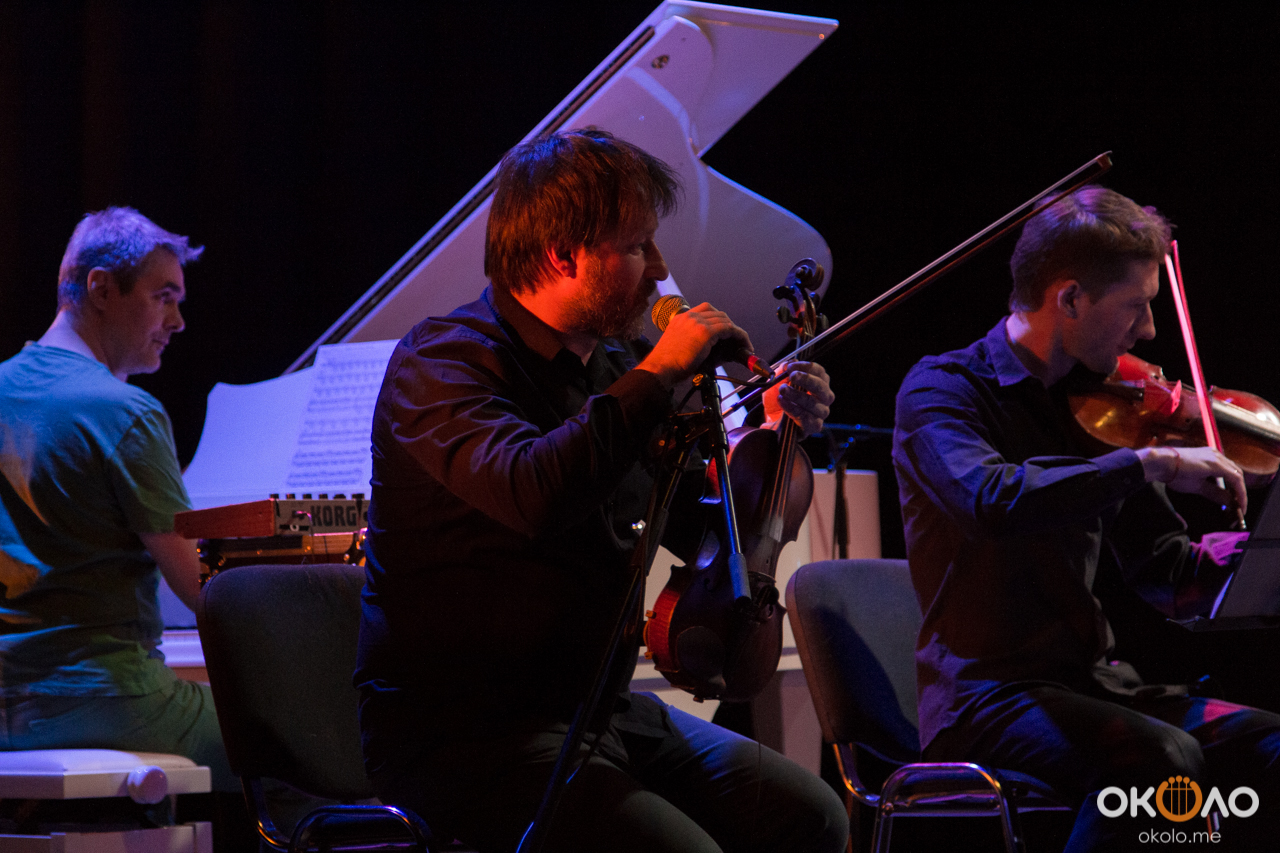 Концерт состоялся в рамках уикенда современных российских композиторов на Эрарта Сцене. Поднявшись на сцену, Алексей Айги признался, что музыканты сами не ожидали, что на сцене их окажется так много! Привычный состав коллектива: Алексей Айги — скрипка, Денис Калинский — виолончель, Андрей Гончаров — труба, Эркин Юсупов — тромбон, Аркадий Марто — фортепиано, Сергей Никольский — бас, Владимир Жарко — ударные, дополнили еще двое скрипачей и арфистка!
